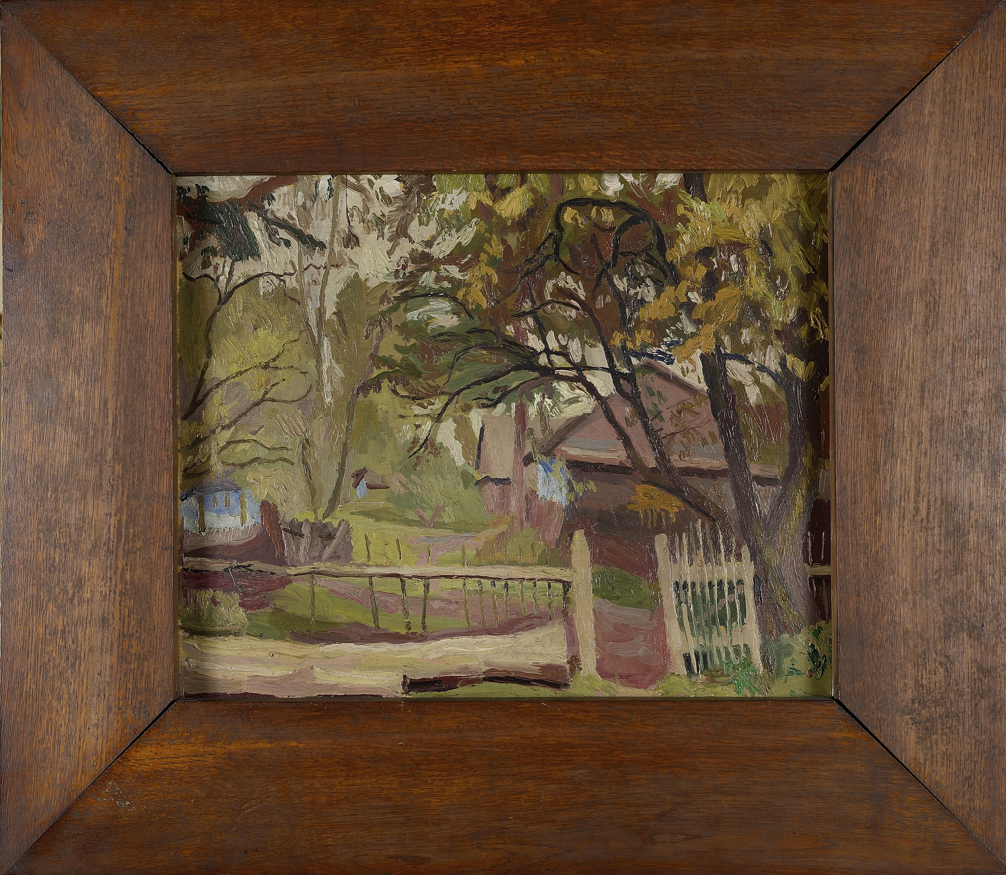 niesygn., na odwrocie naklejka z wystawy: "Sztuka-kwiaty-Wnętrze", Poznań 1937, Stanisław Kamocki, Zakątek.