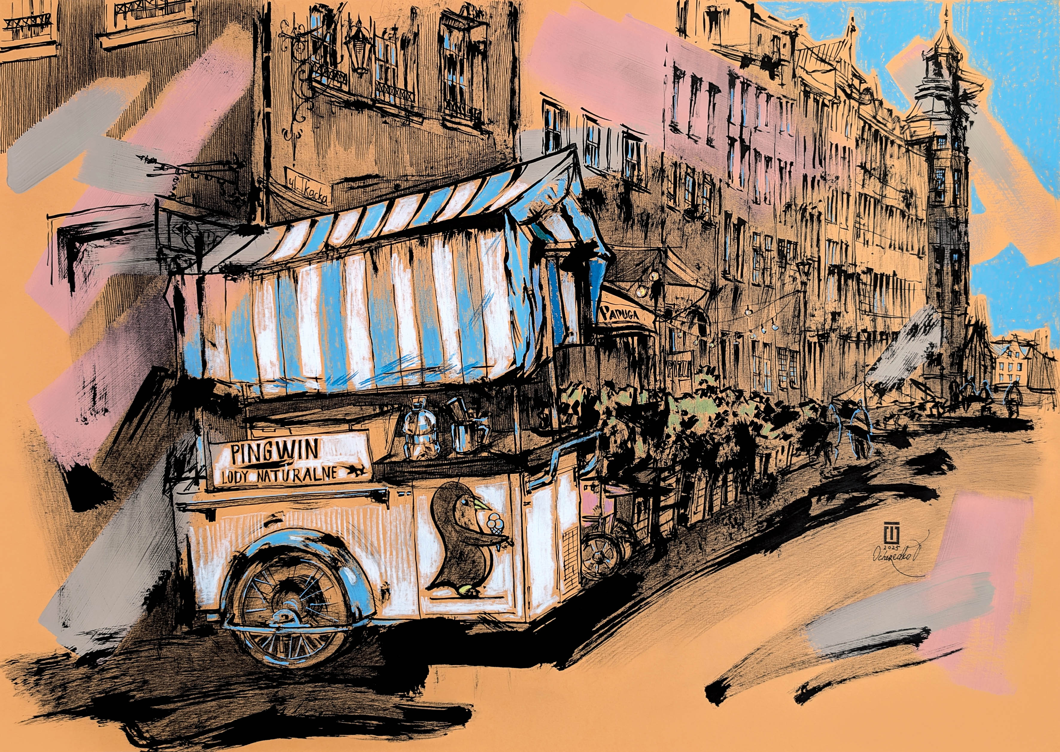 technika mieszana (tusz, ołówek, akryl), papier kolorowy, 50 x 70 cm,