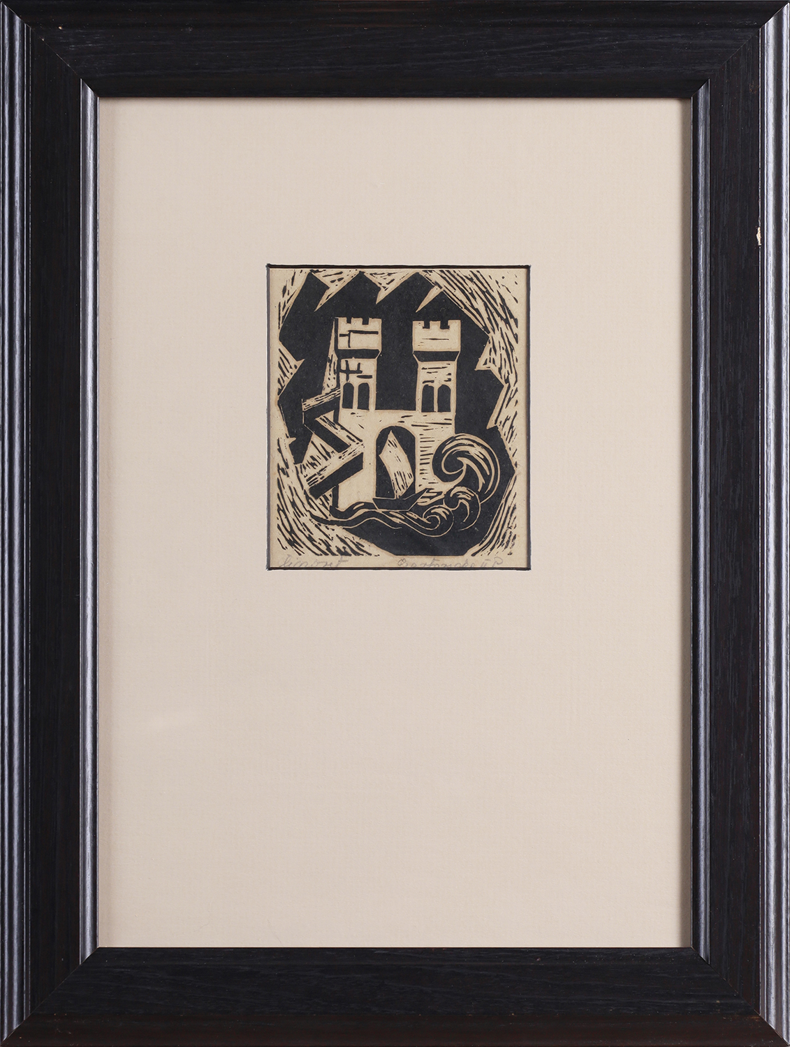 linoryt, papier, 10,5 x 9 cm; (w świetle oprawy),