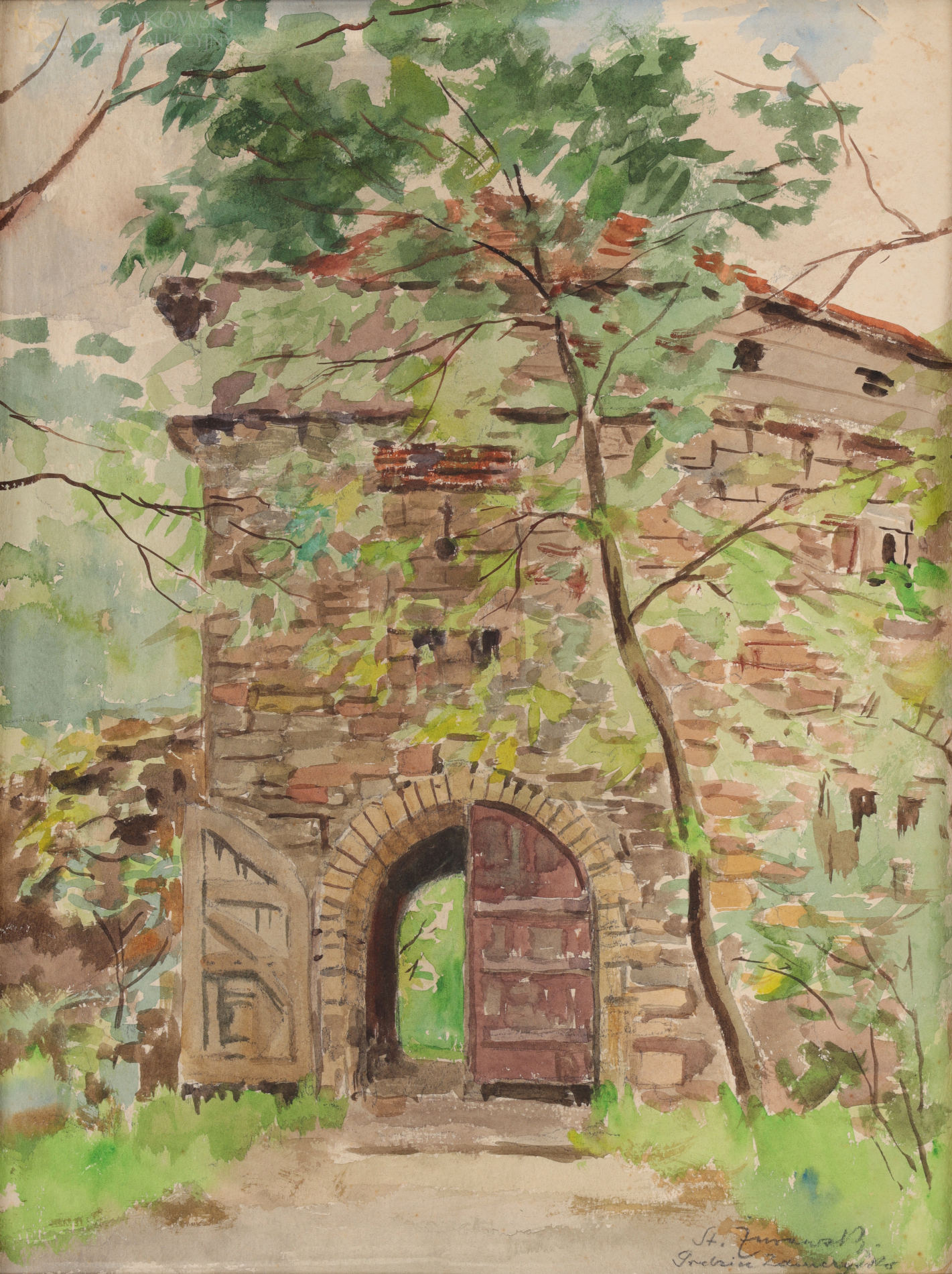 akwarela, papier naklejony na tekturę40 x 30 cm (w świetle passe-partout); 57 x 47 cm (z oprawą)Sygn. p.d.: "St. Żurawski"Opisany p.d.: "Grodziec Zamczysko"
