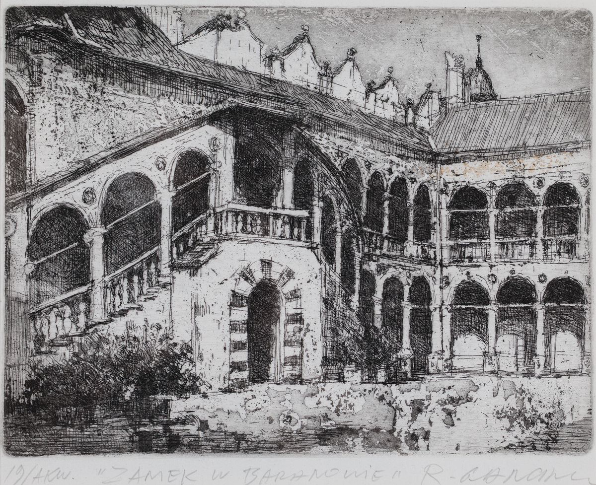 Akwaforta, papier; 15,5 x 18,5 cm (w św. p-p)Sygnowany ołówkiem pod ryciną: 19/Akw „Zamek w Baranowie” R. Gancarz