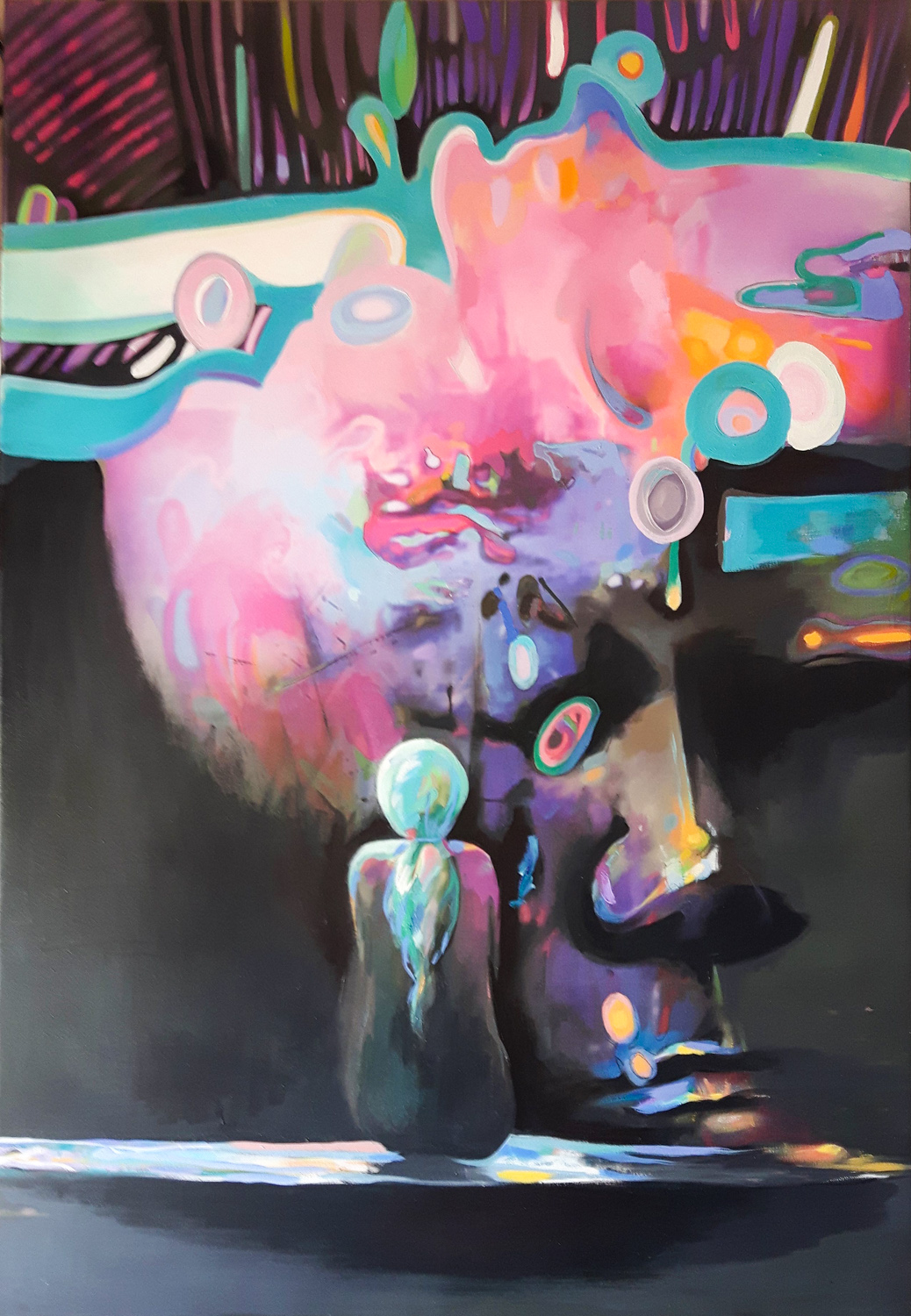 olej, techniki cyfrowe, płótno, 130 x 90 cm, sygn. p.d.