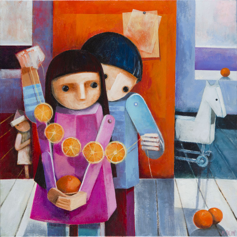 akryl, technika własna/płótno, 100 x 100 cmsygnowany p.d.: 'M.STERN'na odwrociu opisany: '"Zapach pomarańczy" 2016 | "The smell of orange" | Mirella Stern'