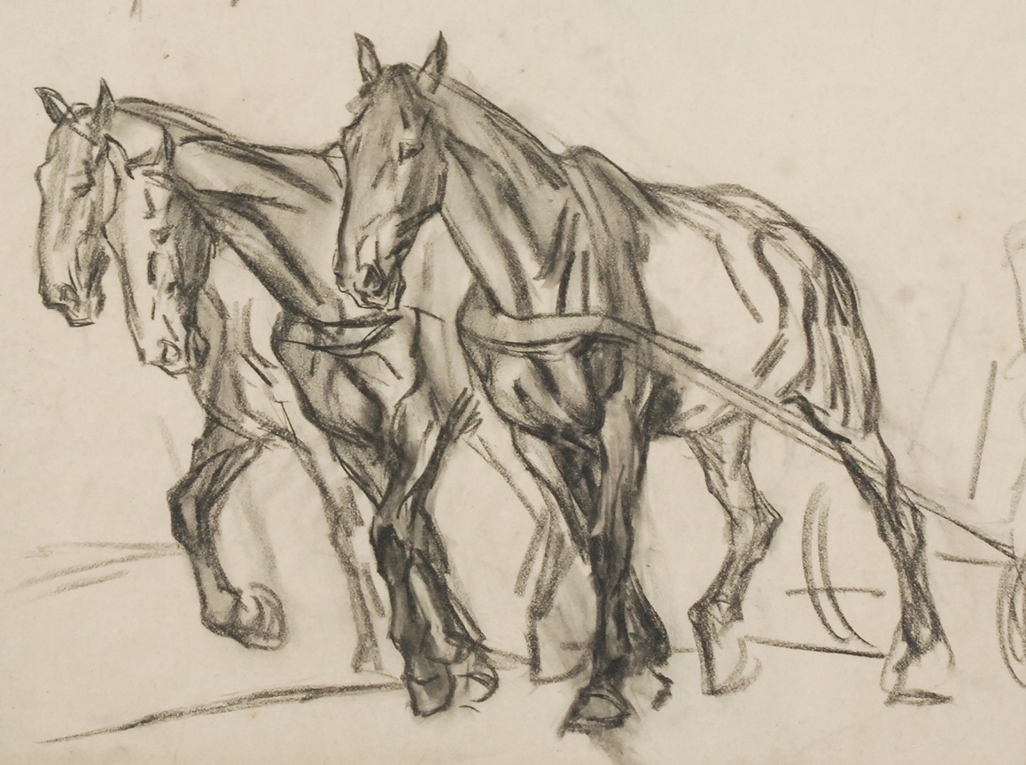 węgiel, papier; 56 x 69 cm.