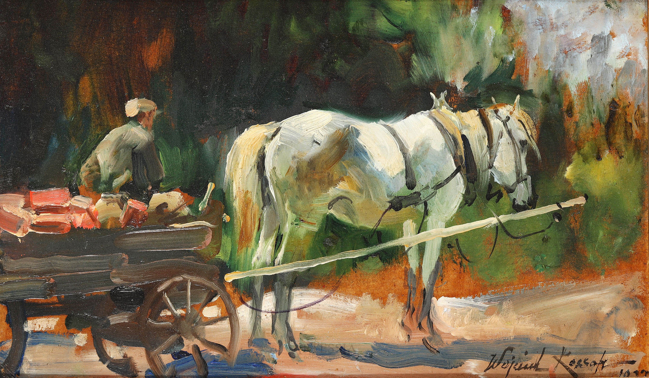 olej/tektura, 24x40 cm,sygn. p.d.: Wojciech Kossak / 1932;na odwrociu napisy: Własność / Marii Kossak oraz jako żywo / WKossak;