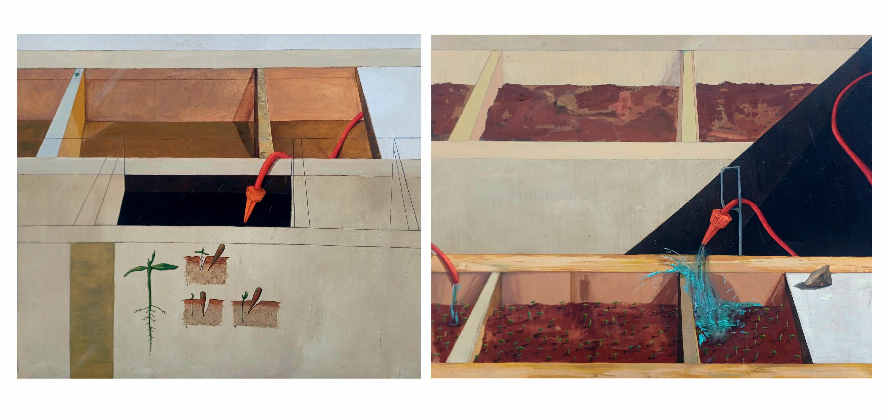 olej, płótno, 100 x 240 cm (całość), wymiar jednej pracy: 100 x 120 cm,