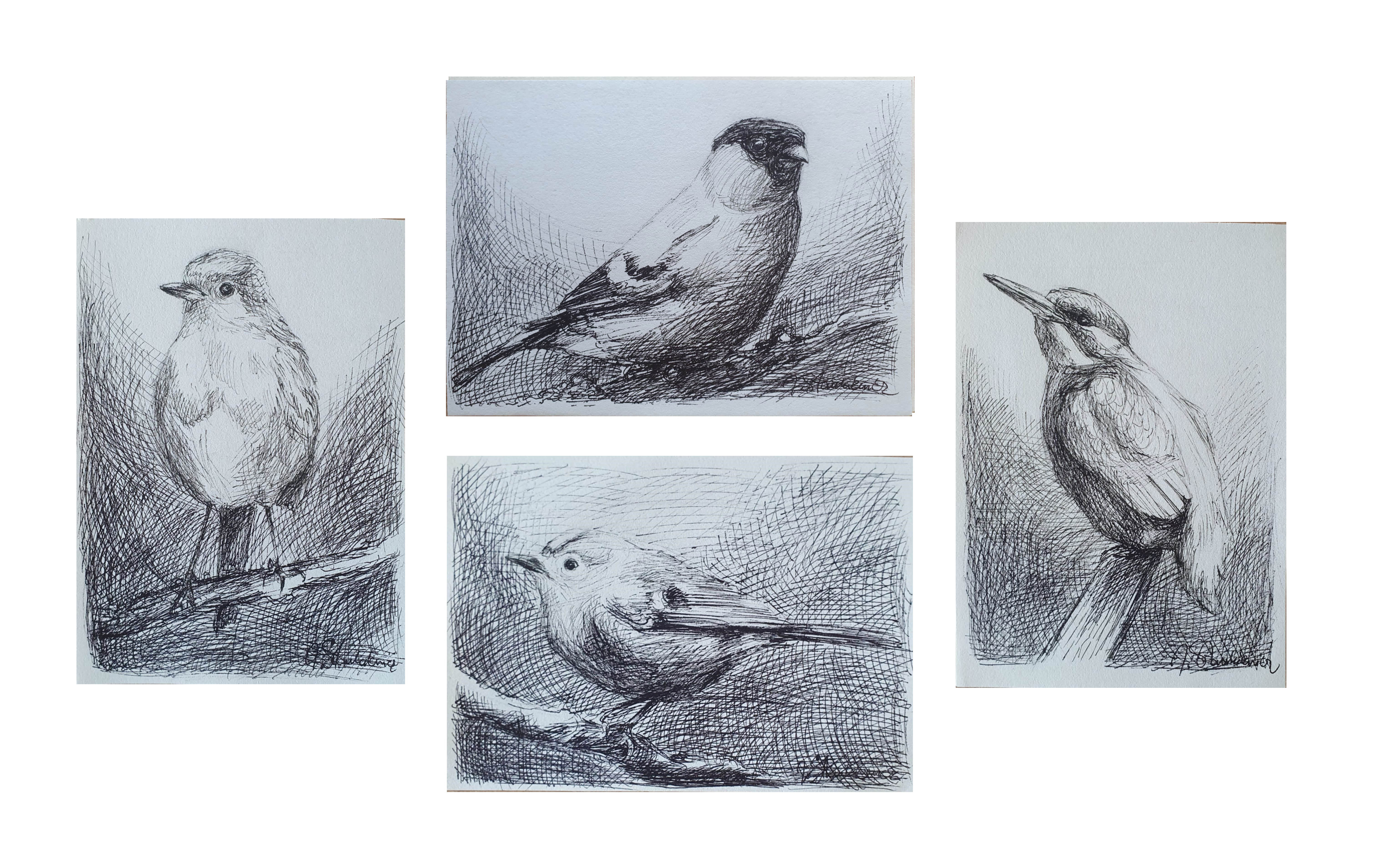 cienkopis, papier, wymiary każdej pracy: 11 x 15,4 cm,
