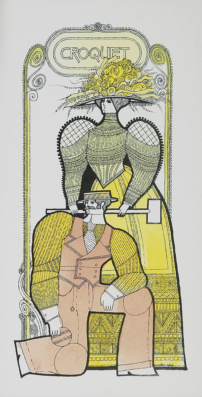 CROQUET, tusz, piórko, akwarela, papier; 27 x 14 cm (w świetle oprawy); sygn. p. d.: Nicolas Cann;