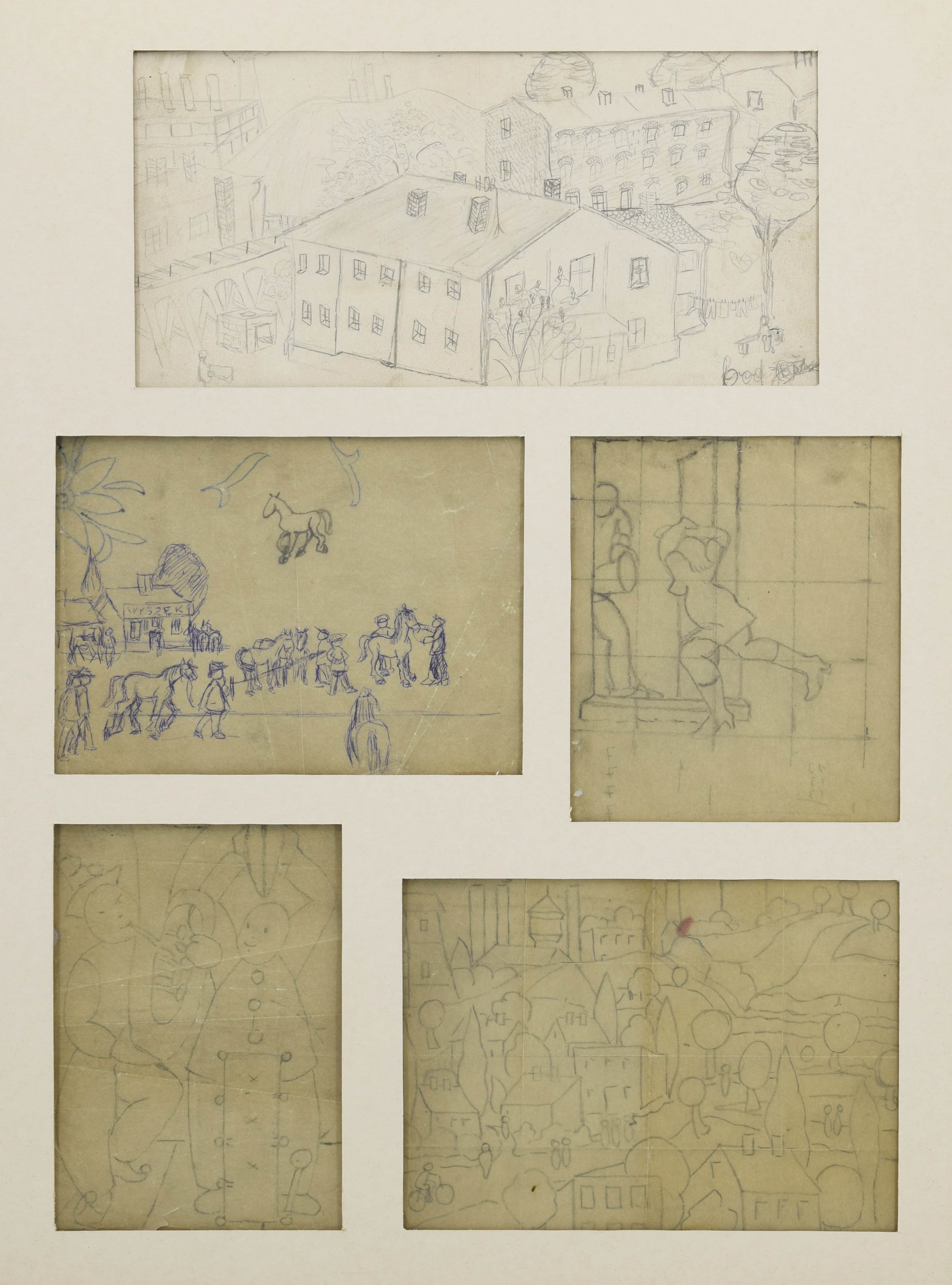 ołówek, długopis, papier, kalka techniczna; wym. różne: 15-17,5 x 12,5-29,5 cm.Stan zach.: zaplamienia, załamania arkuszy.