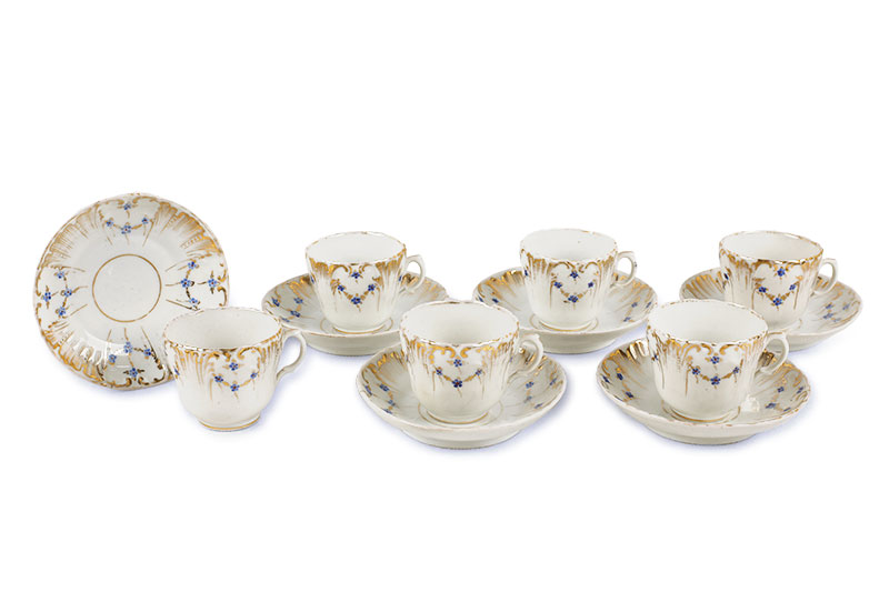Zestaw 6 filiżanek ze spodkami,Rosja, Petersburg, k. XIX w.