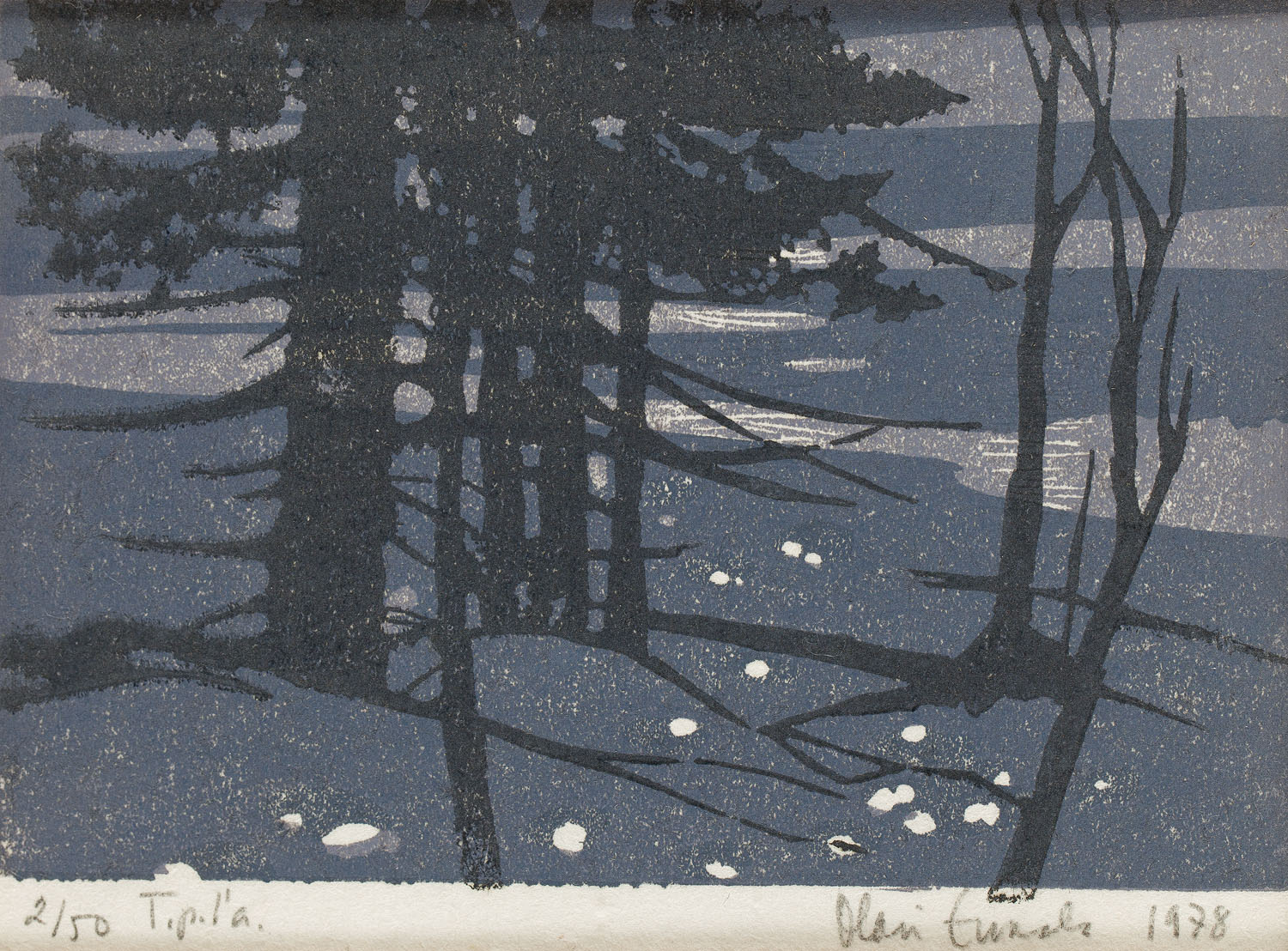 drzeworyt barwny/bibułka, 11 x 15 cm (w świetle passe-partout)sygnowany i opisany ołówkiem p.d.: 'Olavi Ermala 1978', numerowany i opisany l.d.: '2/50 T.p.l'a.'