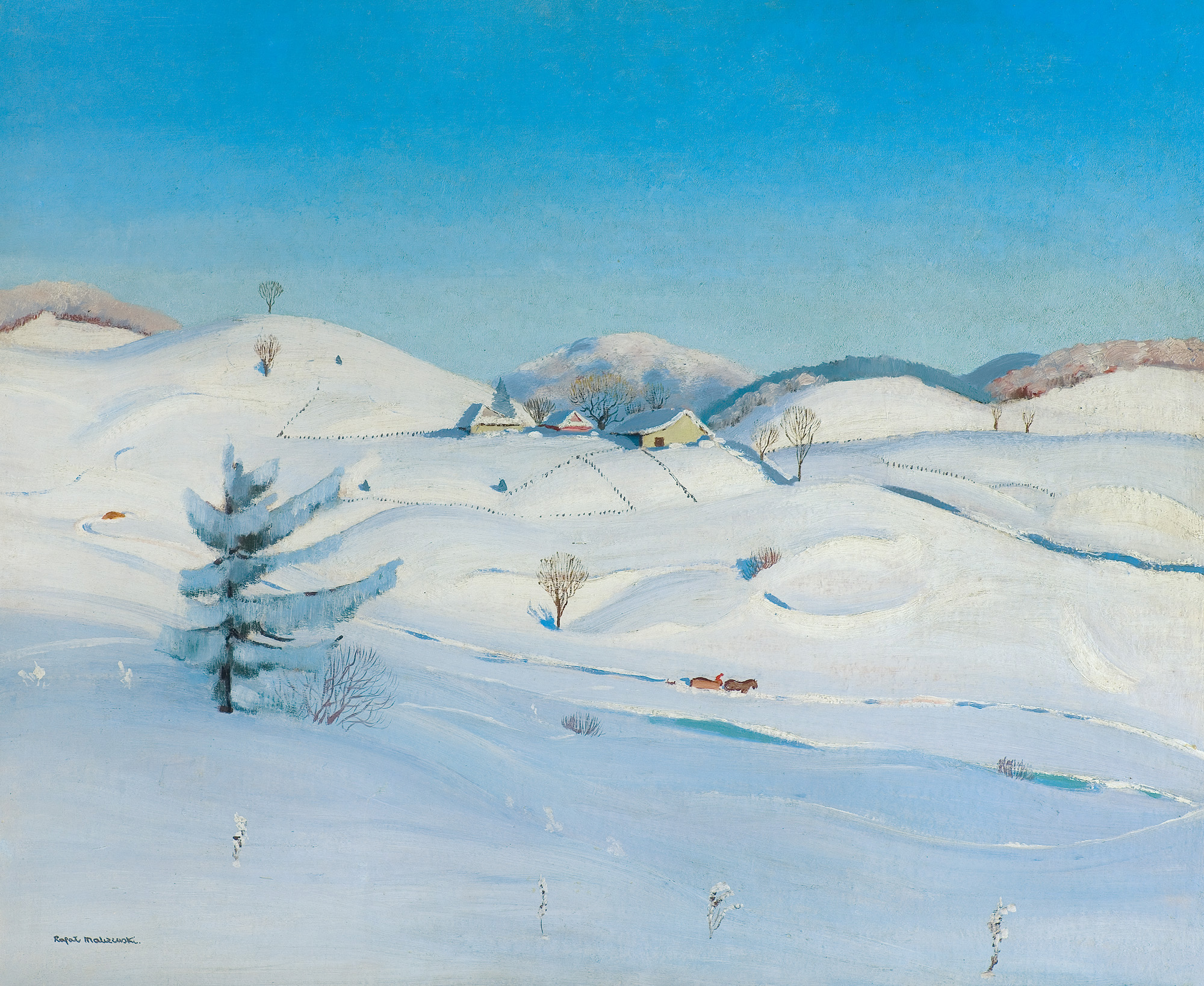 Rafał Malczewski (Kraków 1892 - Montreal 1965) studiował w Wiedniu agronomię, filozofię i architekturę; uczęszczał także do tamtejszej Akademii Sztuk Pięknych, ale edukację artystyczną zawdzięczał przede wszystkim ojcu, Jackowi Malczewskiemu. W latach 1917-1939 stale mieszkał w Zakopanem; był zamiłowanym taternikiem. W roku 1930 wyjechał na półroczny pobyt do Francji. W grudniu 1939 przez Słowację i Węgry przedarł się do Francji, skąd następnie wyjechał do Brazylii a później Stanów Zjednoczonych. W 1942 dotarł do Montrealu, gdzie pozostał na stałe. Począwszy od 1919 r. wiele wystawiał; od 1934 r. także jako członek ugrupowania „Rytm”. Malował przede wszystkim krajobrazy – z Tatr, Podhala, widoki z małych miasteczek i z fabrycznego Śląska, później także z Brazylii i Kanady. W swoich obrazach – świadomie prymityzowanych, utrzymanych często w poetyckim i bajkowym nastroju – bliski jest sztuce naiwnego realizmu. Malczewski był również literatem, autorem artykułów o sztuce, felietonów, esejów oraz wspomnień tatrzańskich i zakopiańskich, m.in. „Narkotyk gór”, „Góry wołają” czy „Pępek świata”, książką napisaną już w Kanadzie.