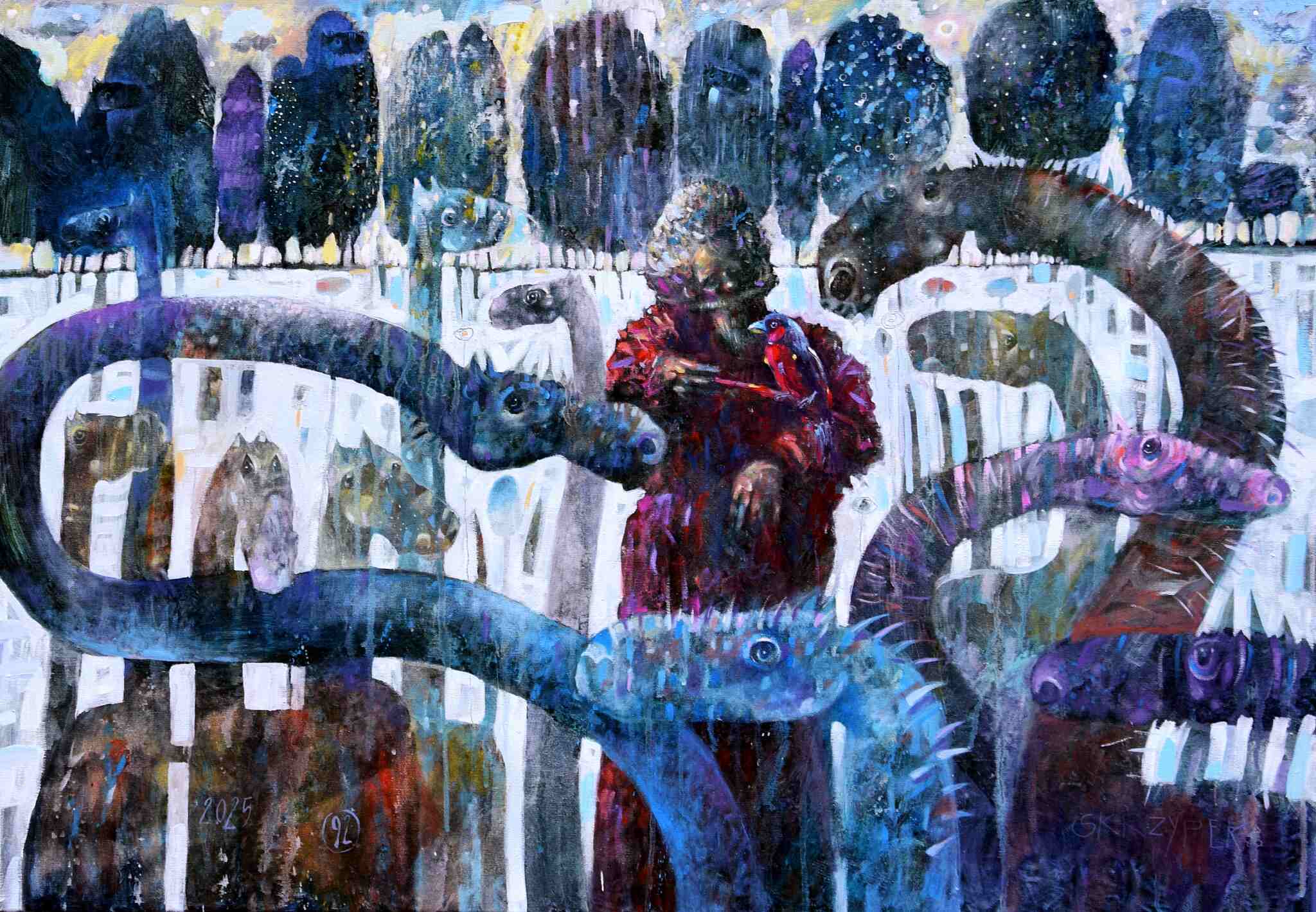 Zimowy pejzaż z tajemniczym ptaszkiem, 2025