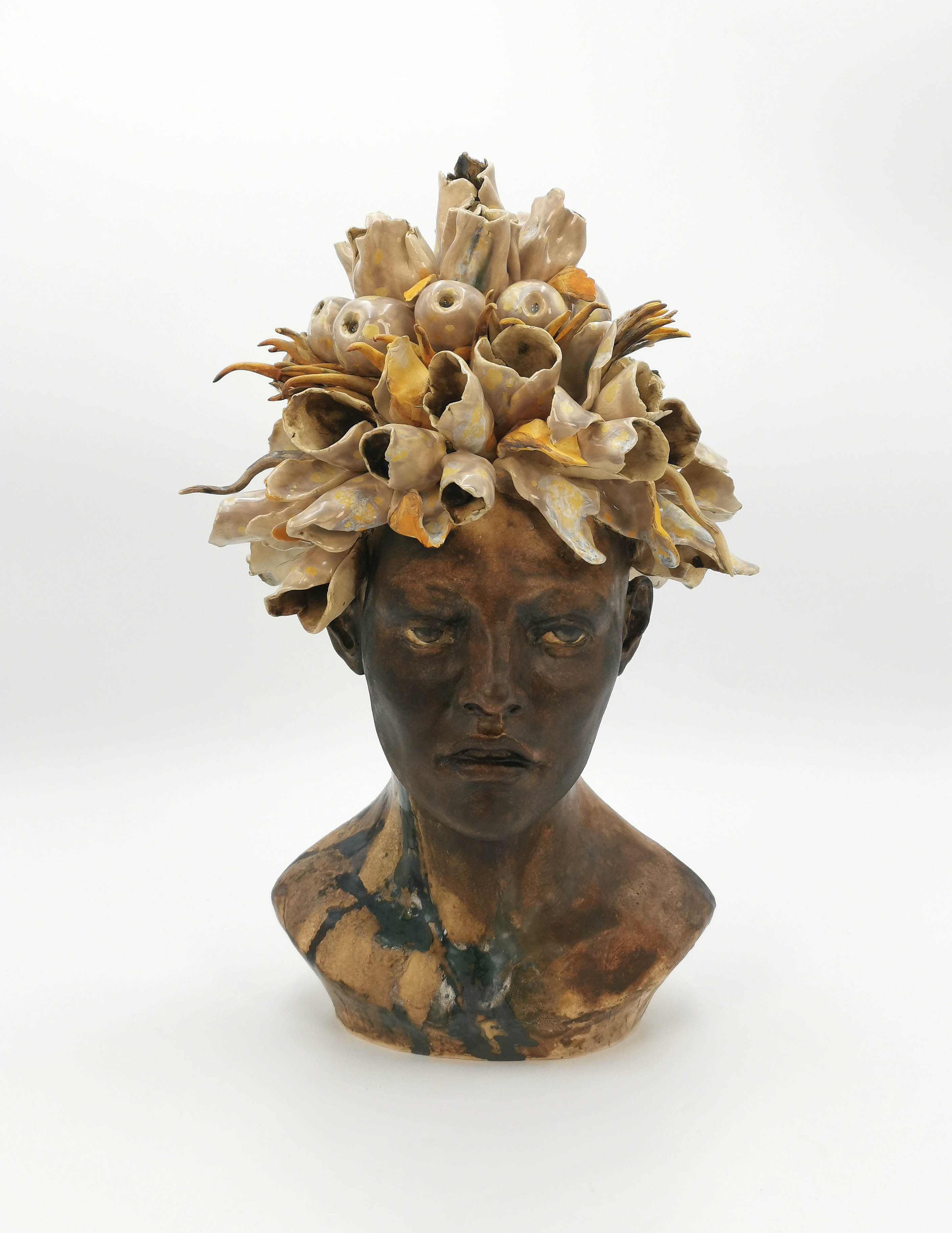 ceramika szkliwiona, częściowo patynowana; 37 x 22 x 22 cm;