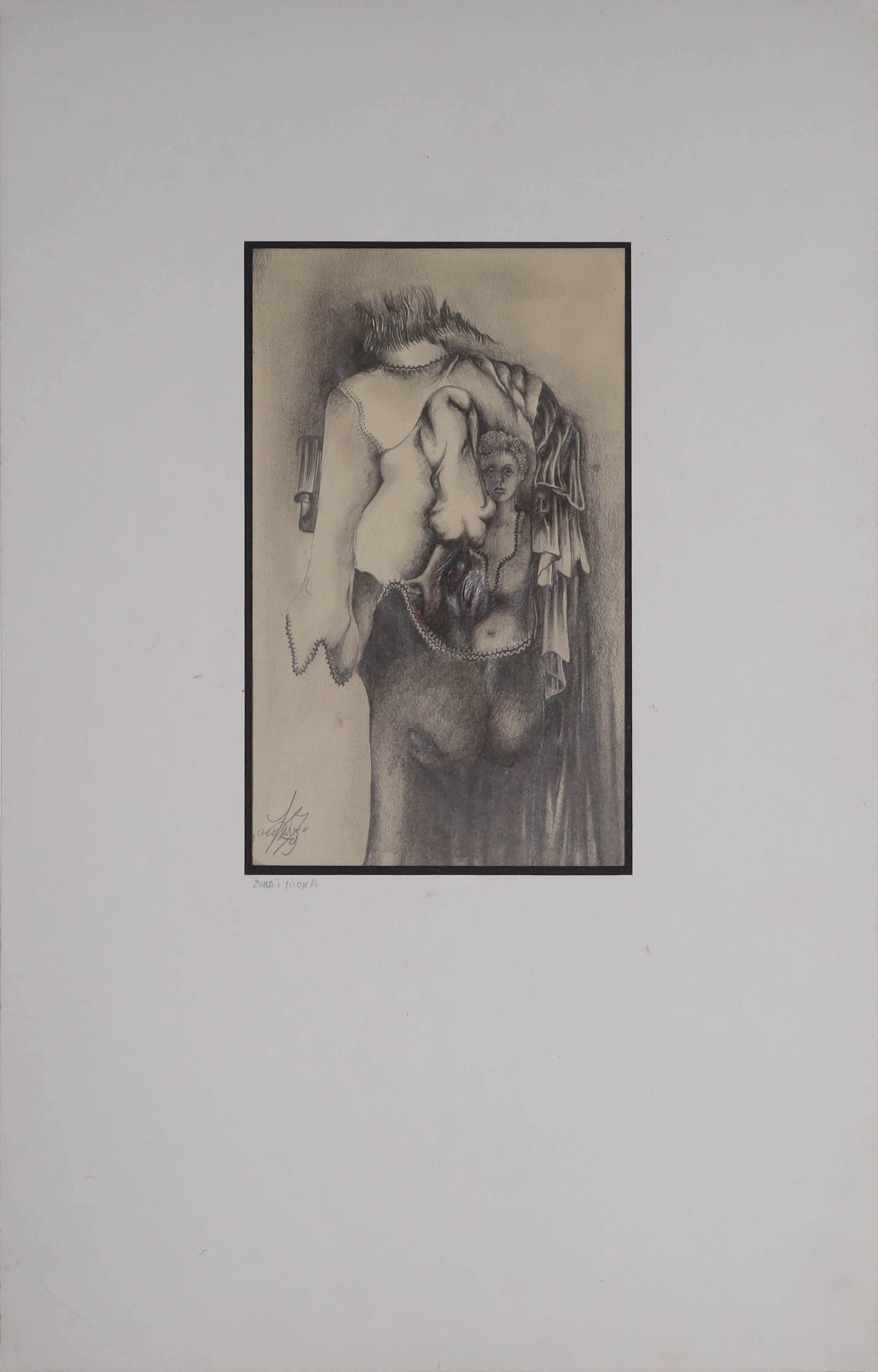 ołówek, papier, 21,5 x 13 cm; (w świetle oprawy); Żona i Iwona ? CHAMAK?