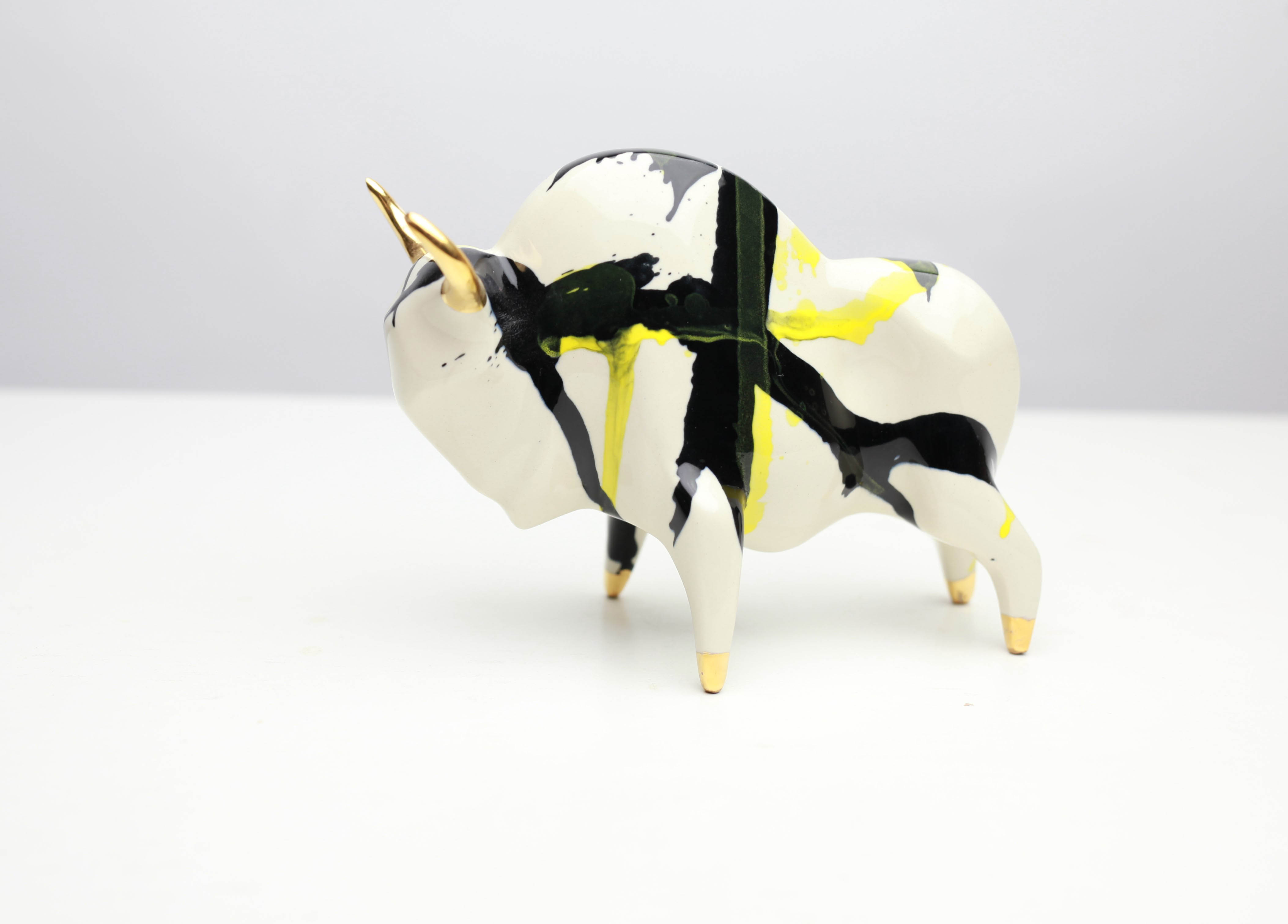 ceramika malowana podszkliwnie, szkliwiona transparentnie, złocona, 15 x 12 x 6 cm, od spodu logo autora i opis numeryczny 1949/2024.