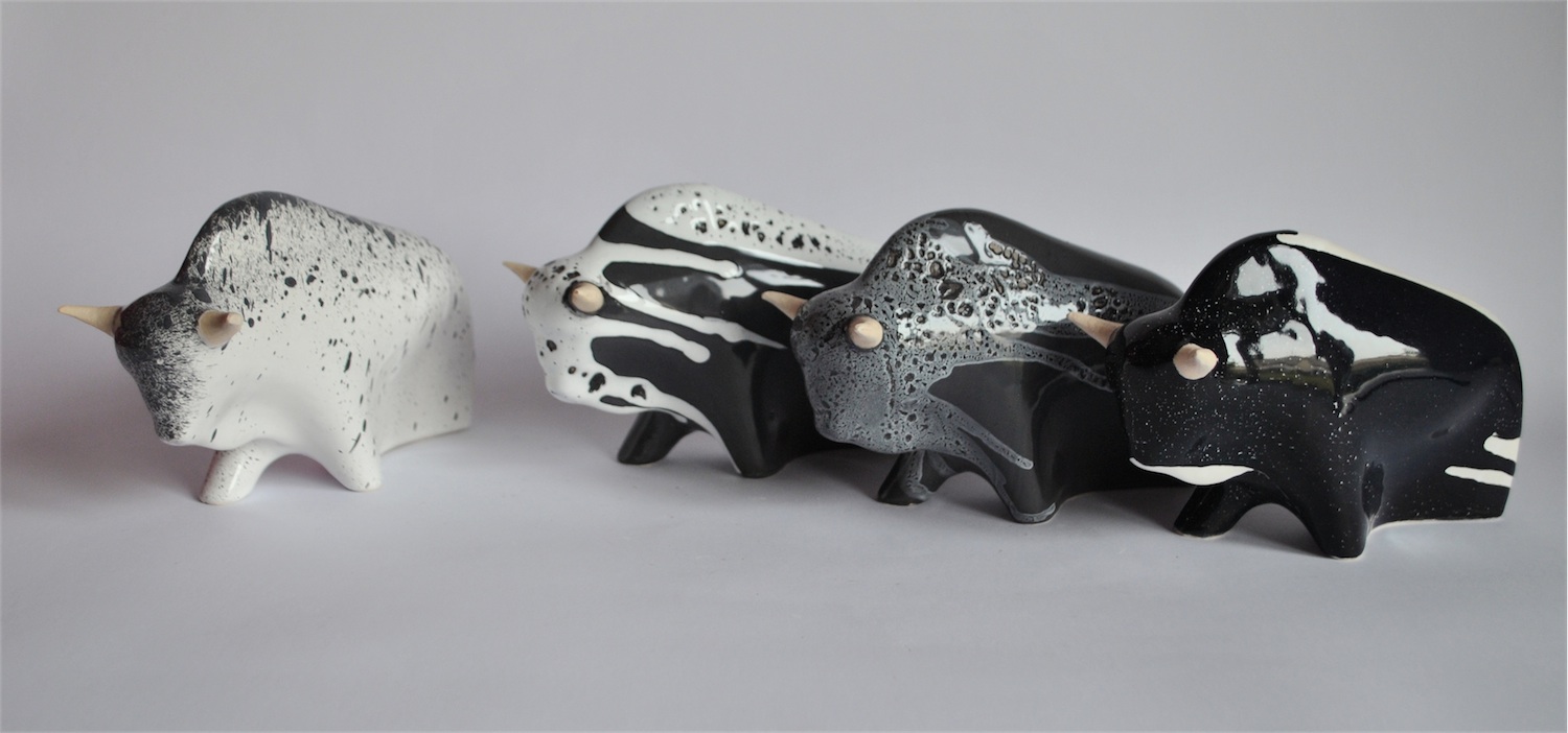 ceramika szkliwiona, 4 sztuki, 16 x 6,5 x 11 cm, sygn. na spodzie