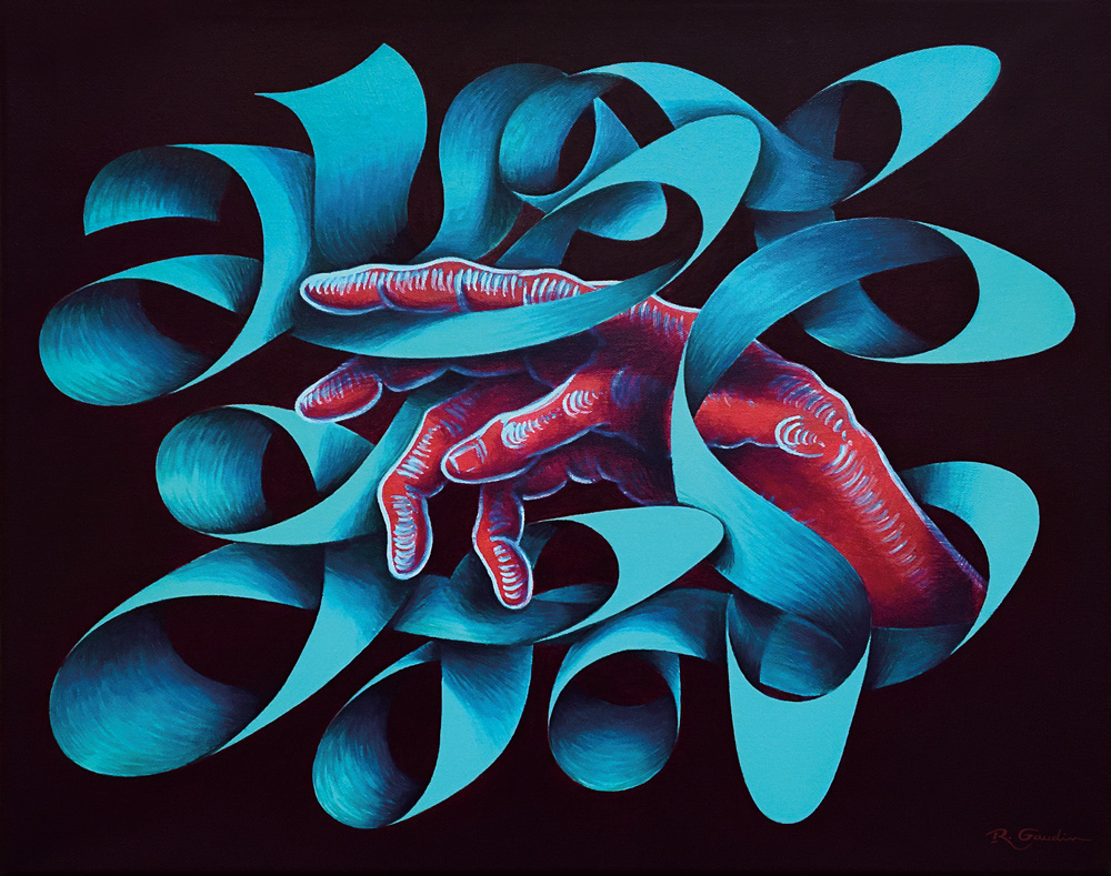 Jego malarstwo to krzywizny, kolory i radość życia. Ta sztuka nas zakręca, owija i pochłania za sprawą motywu przewodniego, jakim jest wstęga. Motyw ten, w twórczości artysty, nawiązuje do symboli celtyckich i kaligrafii.