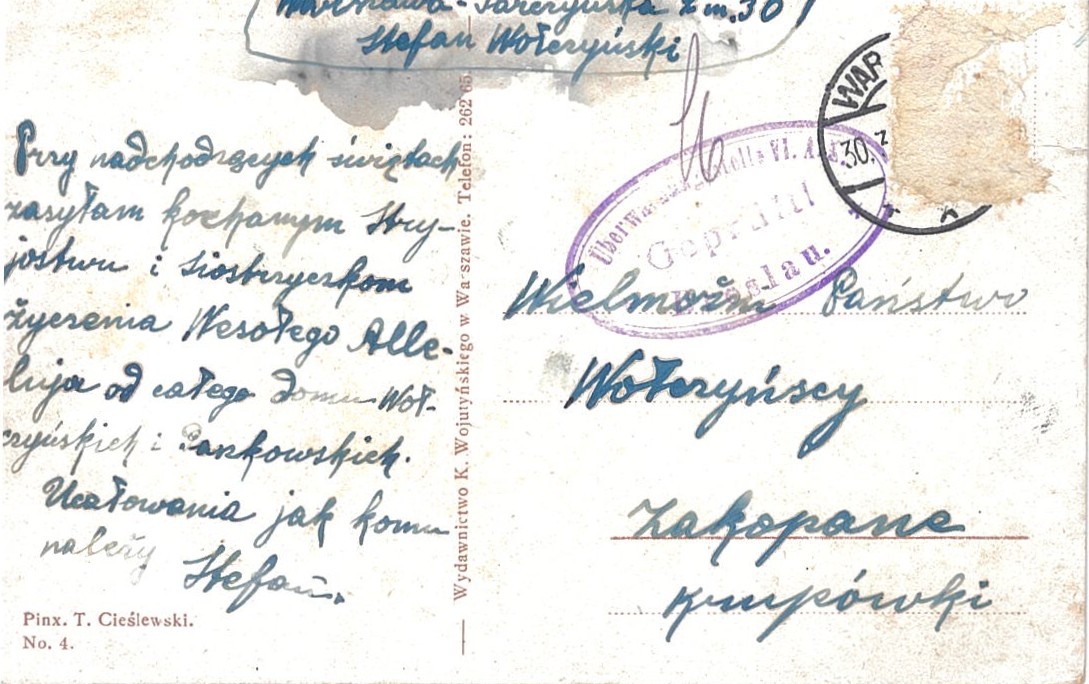 Wydawnictwo K. Wojutyńskiego w Warszawie. Telefon: 262 65.Pinx. T. Cieśliński. Np. 4.