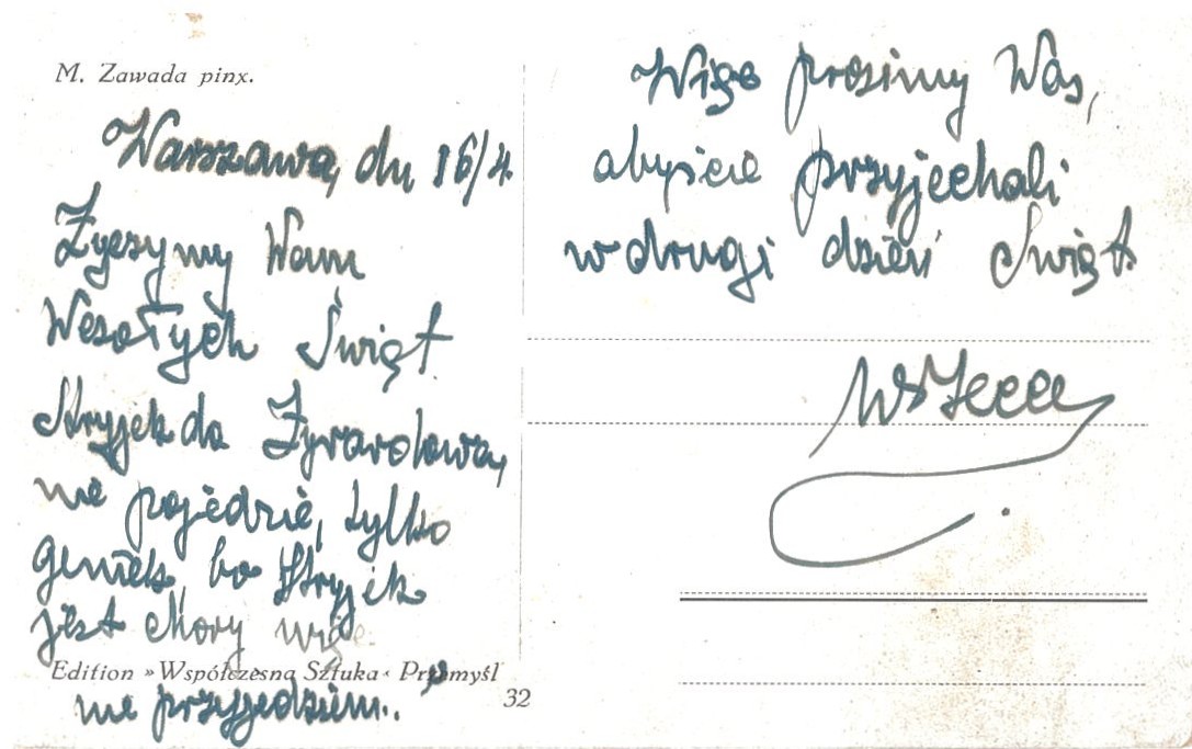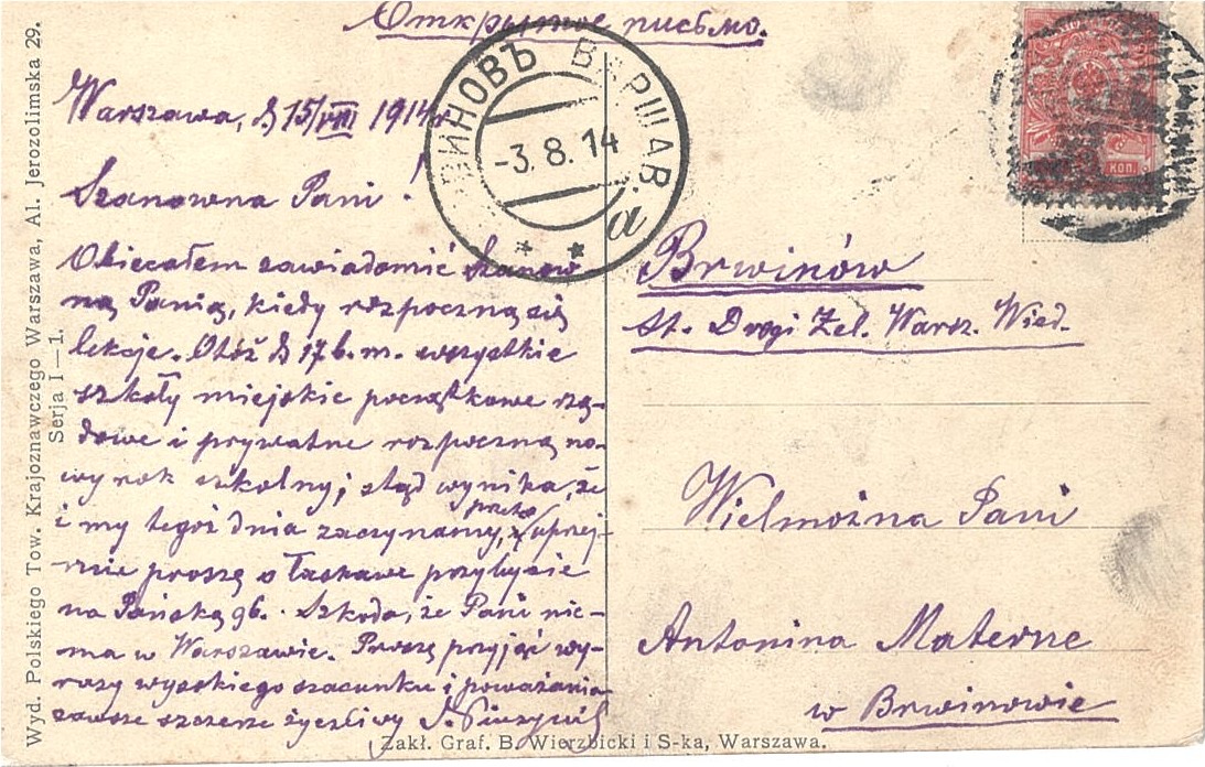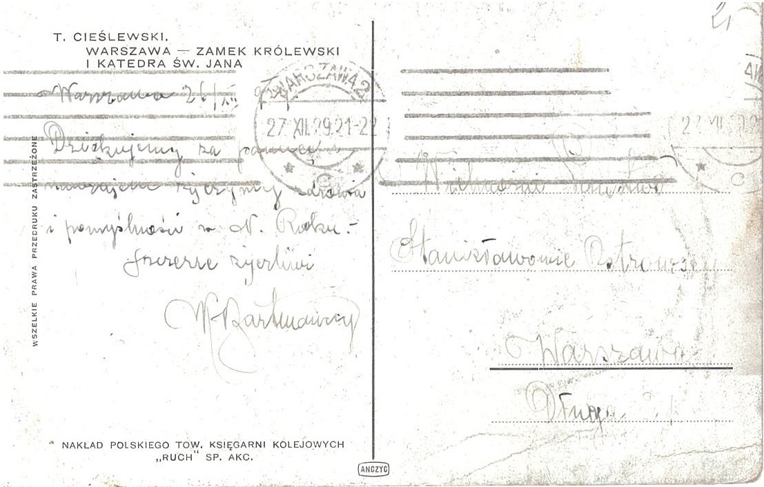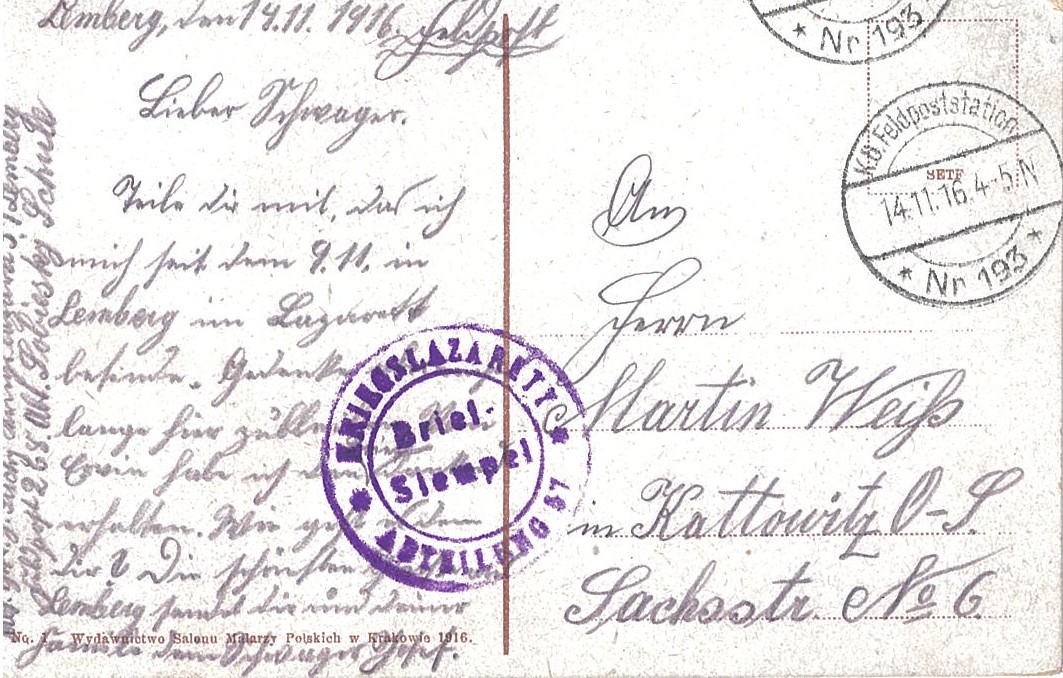 na odwrocie zapiski i pieczątki: Warszawa, Breslau