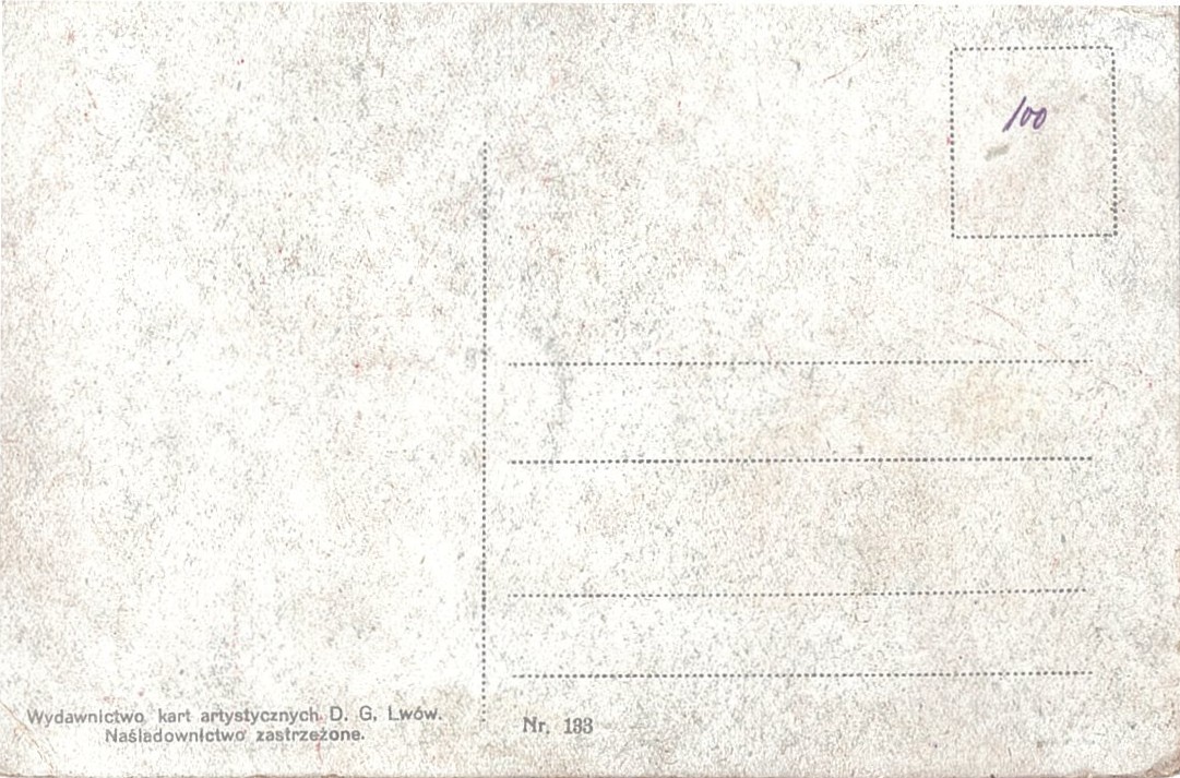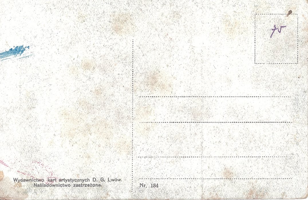 Wydawnictwo kart artystycznych D. G. Lwów. Naśladownictwo zastrzeżone. Nr. 184