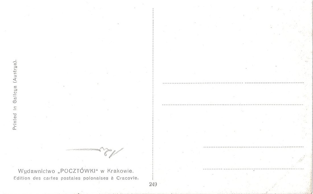 Wydawnictwo "POCZTÓWKI" w Krakowie. Printed in Galicya (Austrya). 249