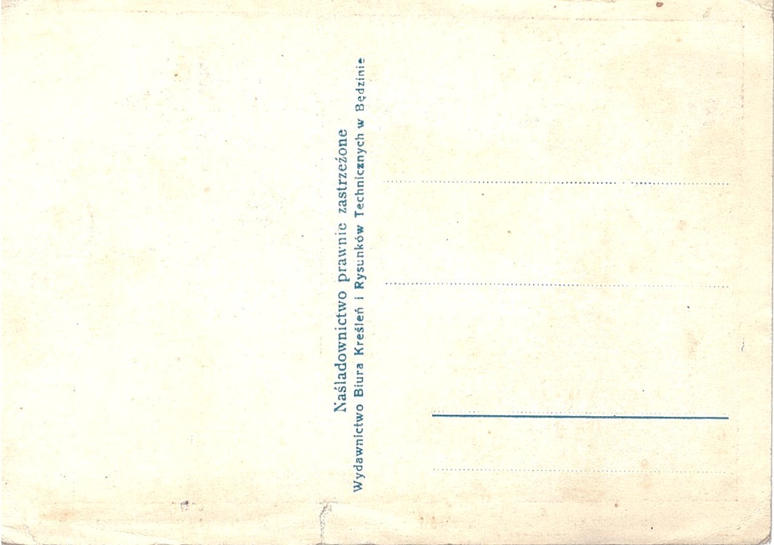Naśladownictwo prawnie zastrzeżone. Wydawnictwo Biura Kreśleń i Rysunków Technicznych w Bedzienie.