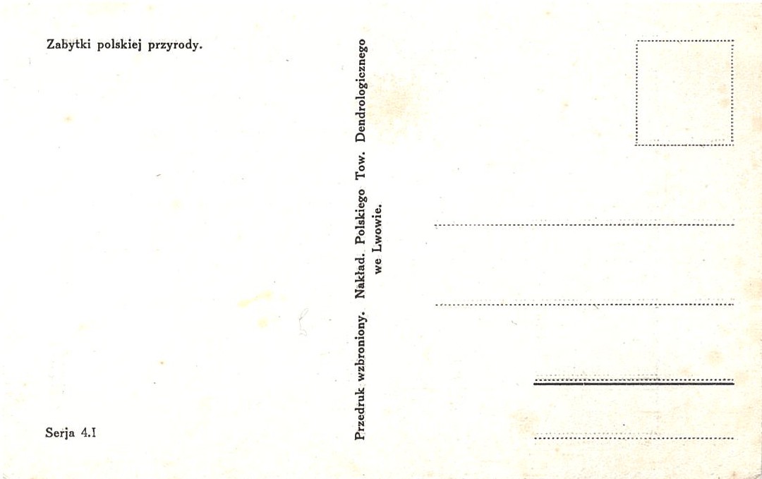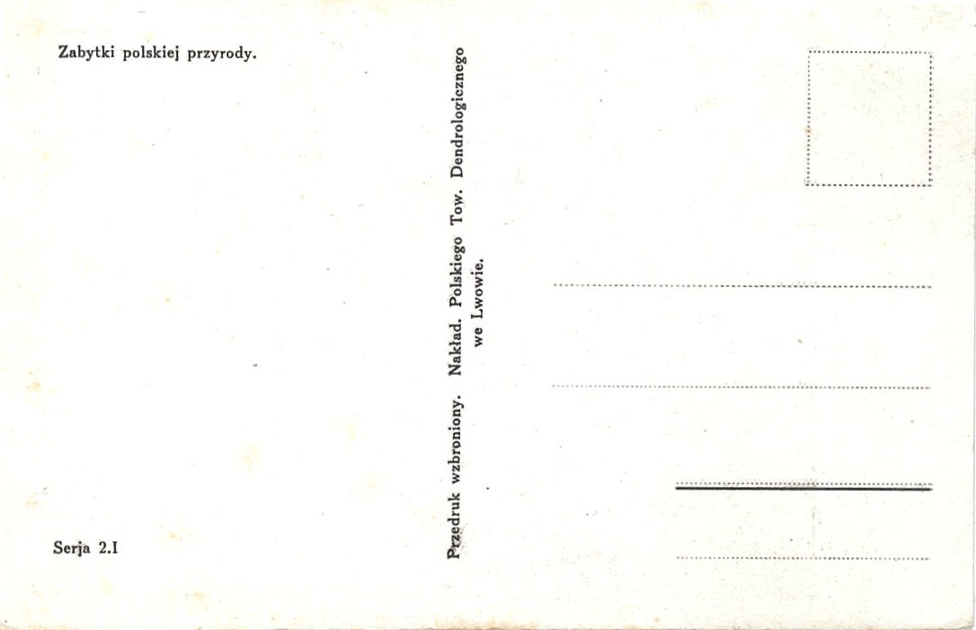 Zabytki polskiej przyrody. Serja 2.1. Przedruk wzbroniony. Nakład. Polskiego Tow. Dendrologicznego we Lwowie.