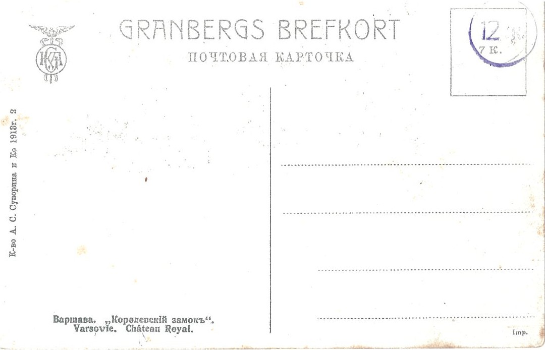 Granbergs Brefkort. Varsovie. Chateau Royal.