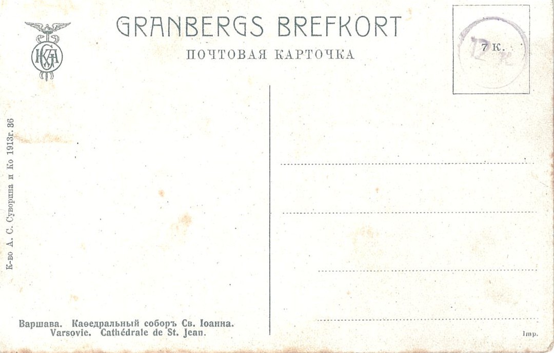 Granbergs Brefkort. Varsovie. Cathedrale de St. Jean