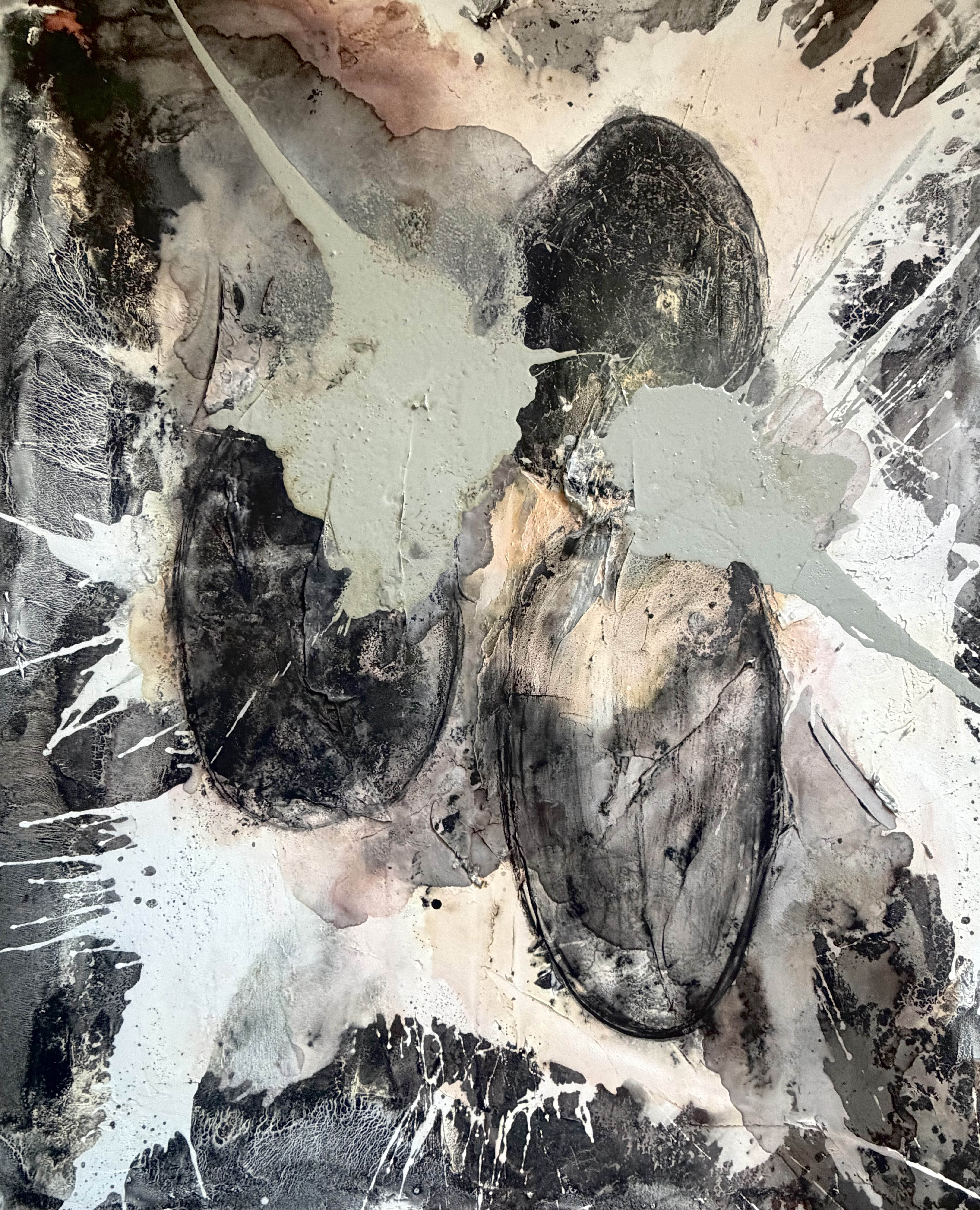sygnowany l.d.:'M Jamioł' oraz opisany na odwrocie:'Technika mieszana | Olej | AKRYL |PŁÓTNO | MATERIA | „ARCHEOLOGIA CIENIA” | 110 cm x 90 cm | 2026 | Jamioł'