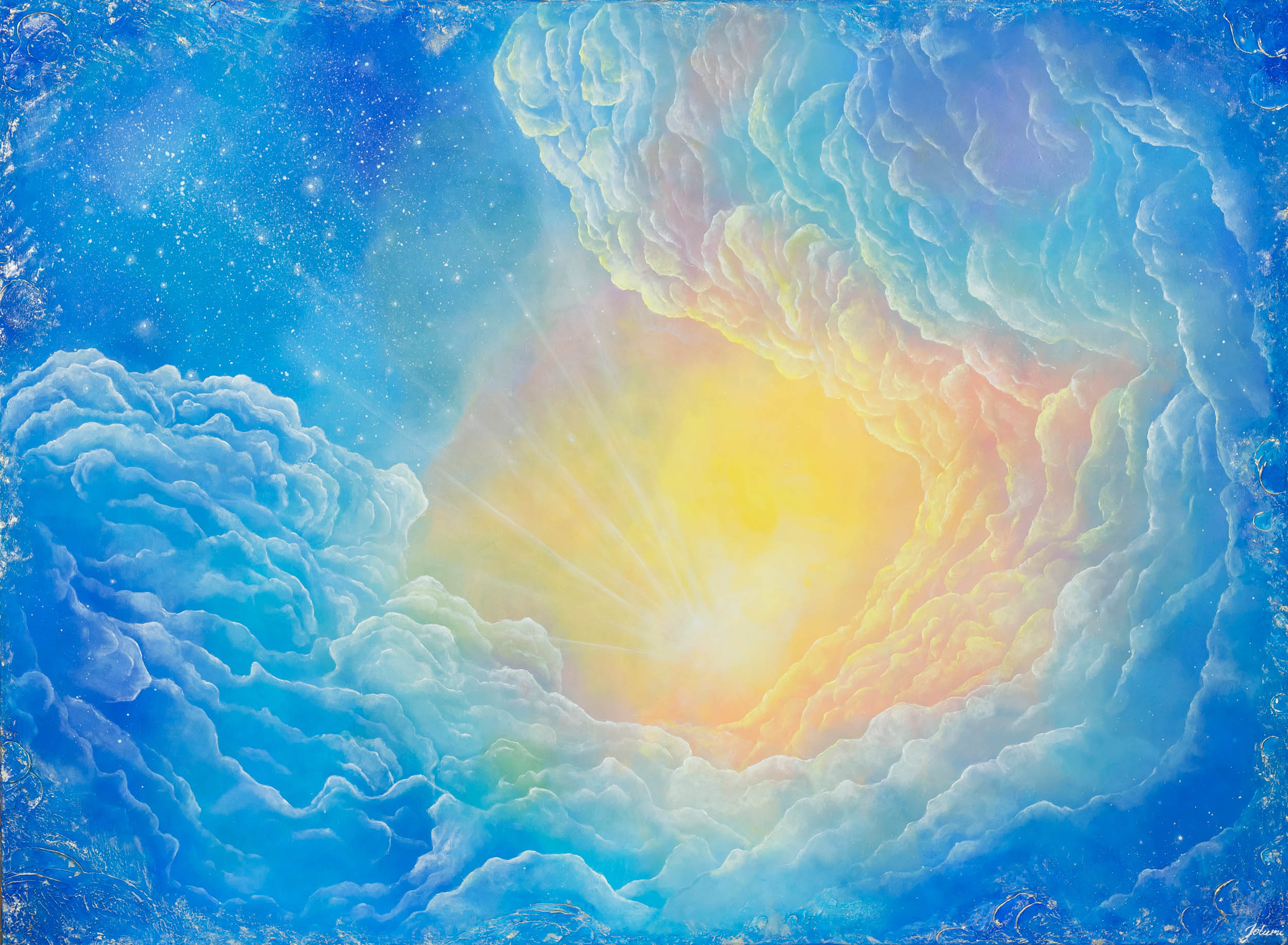 sygnowany p.g.: 'Jolumi' oraz opisany na odwrocie: '"Brama niebios" 2025 | Jolanta Stefaniszyn'