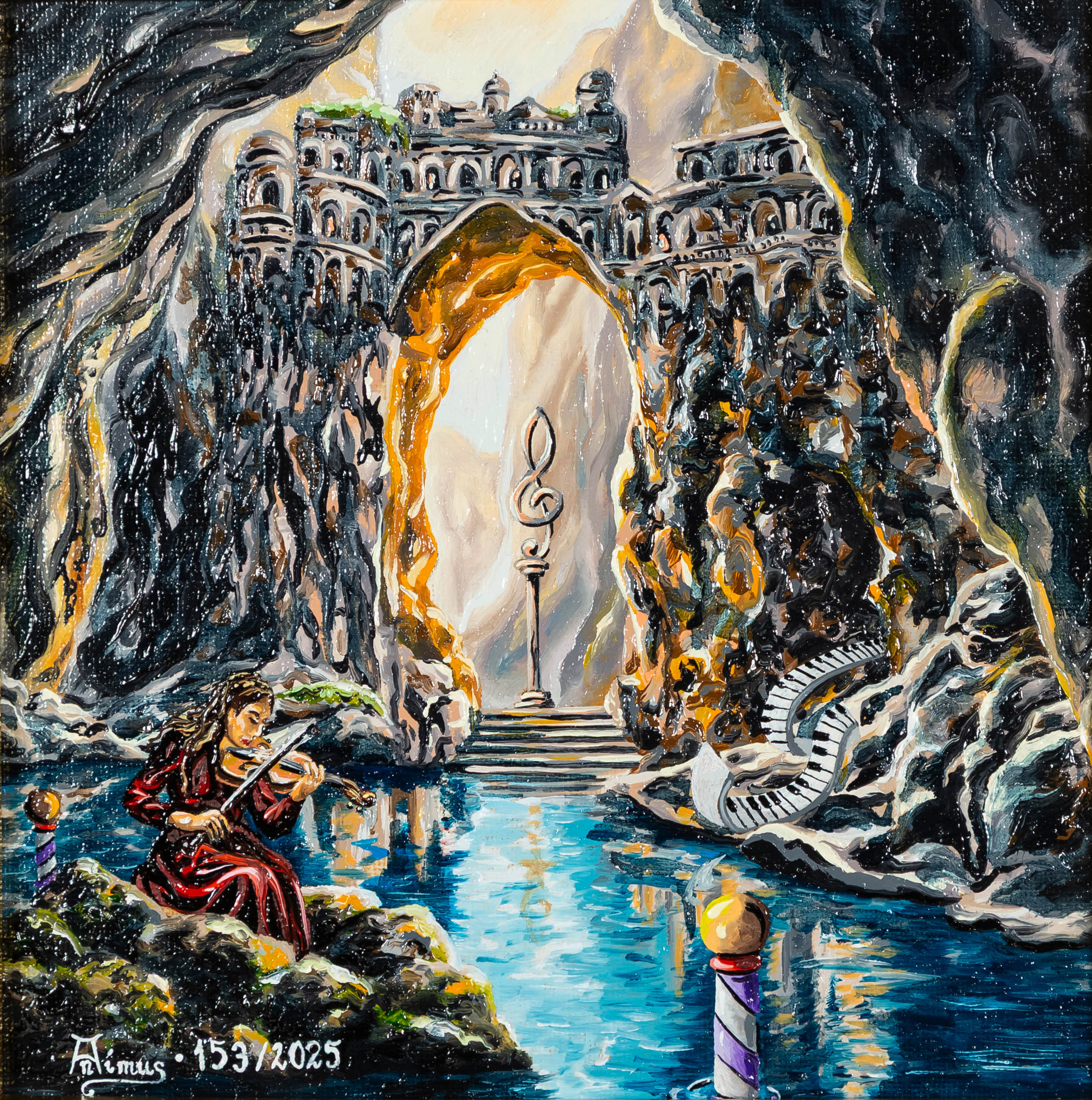 opisany l.d.: 'Animus 153/2025' oraz sygnowany na odwrocie: '"Melodnia kamienia i strun" | Krzysztof Żyngiel | 2026 rok'