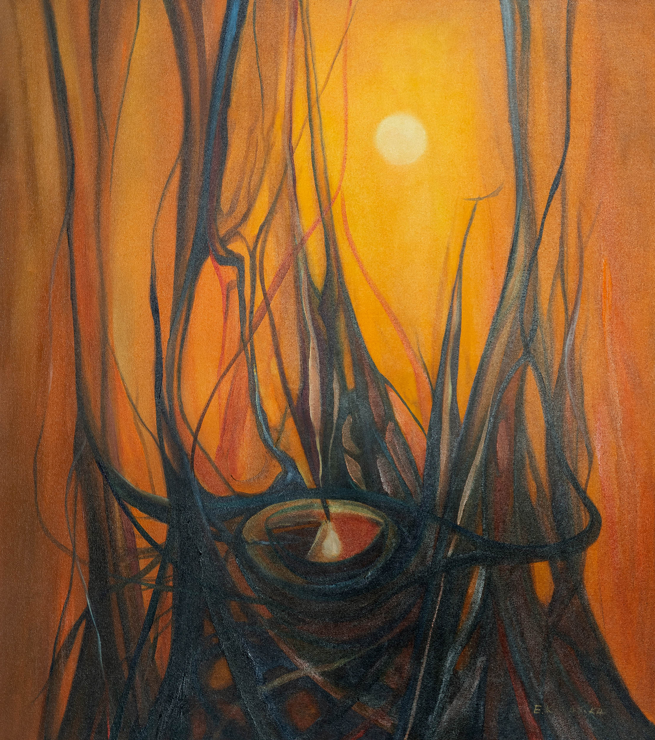 sygnowany p.d.: 'E. KONARSKA' oraz opisany na odwrocie: 'Ewa Konarska | [sygnatura] |Sulejówek 2025| Technika olejna na płotnie | 90/80'
