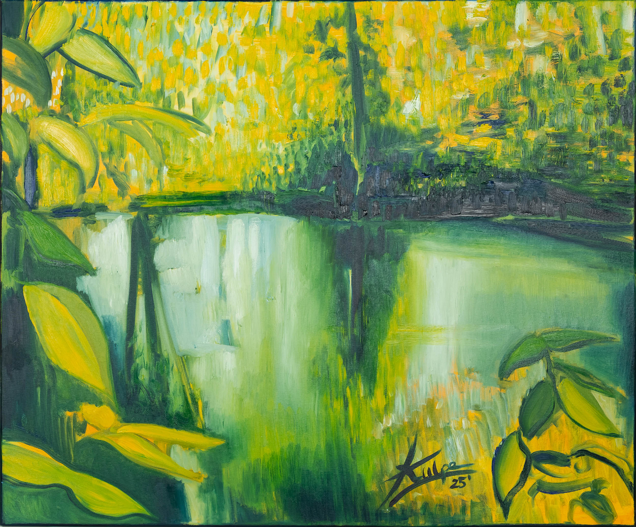 sygnowany p.d.: 'Kulpa | 25' ' oraz opisany na odwrocie: 'Bartłomiej 2025 | KULPA | Z CYKLU | PODRÓŻ PRZEZ | SEN [sygnatura artysty] 25' | "WSPOMNIENIE | ZNAD Stawu" '