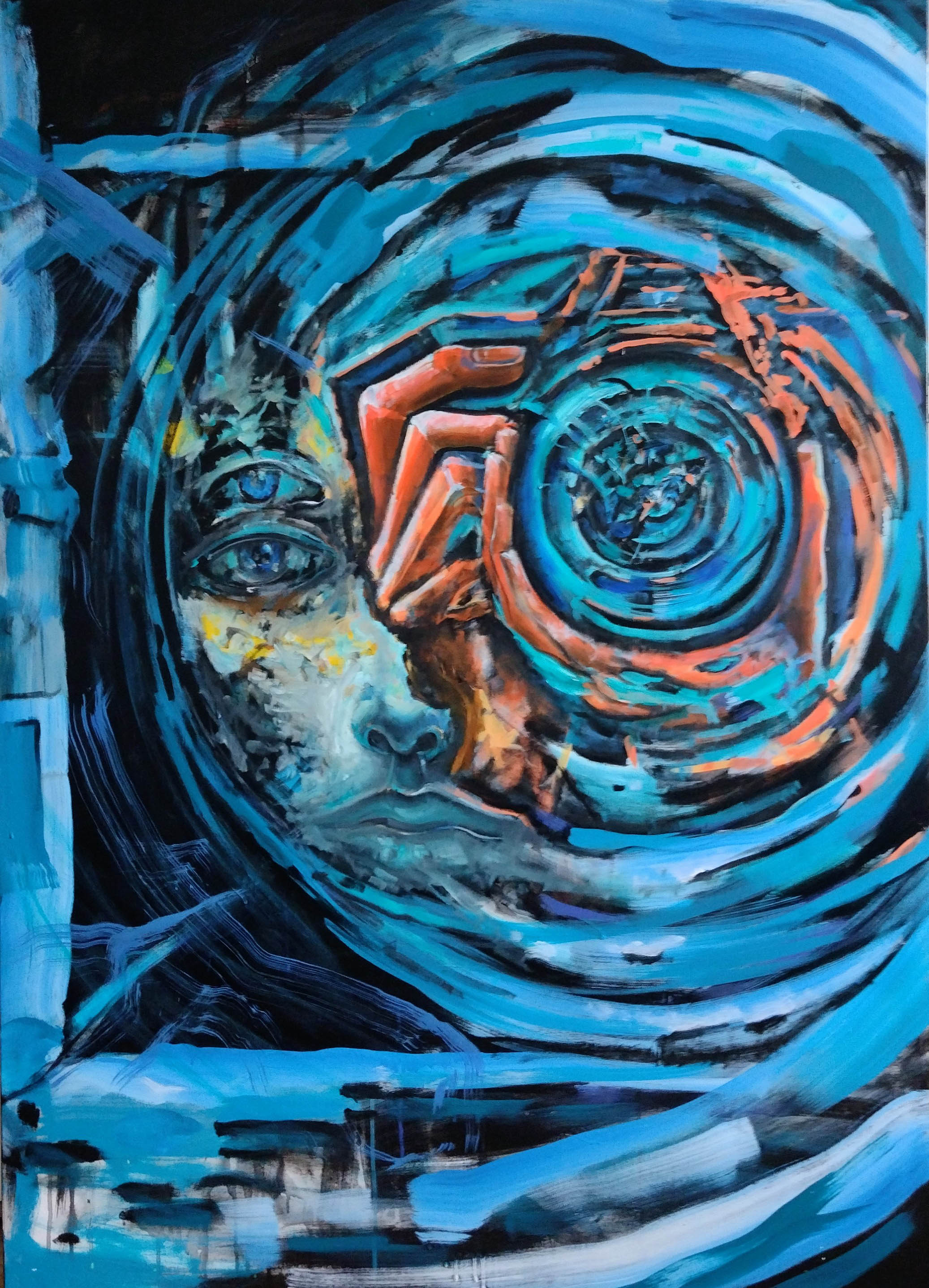 akryl, technika własna, aerograf, płótno, 70 x 90 cm,
