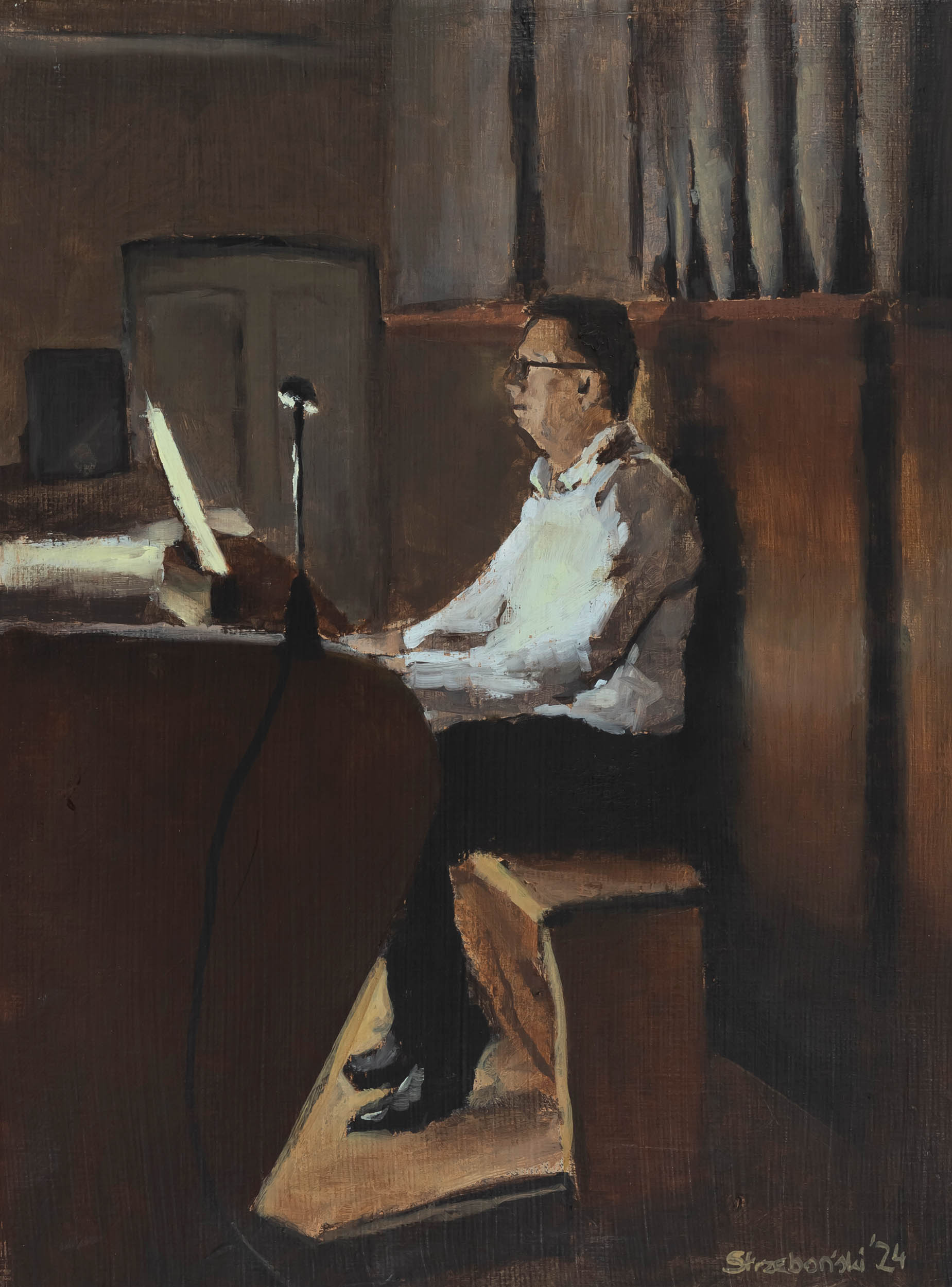 sygnowany p.d.: 'Strzeboński'24' oraz opisany na odwrocie: '"Toccata" | 30 x 40 cm | olej, len | werniks Gamvar | Dariusz Strzeboński | 05.2024'