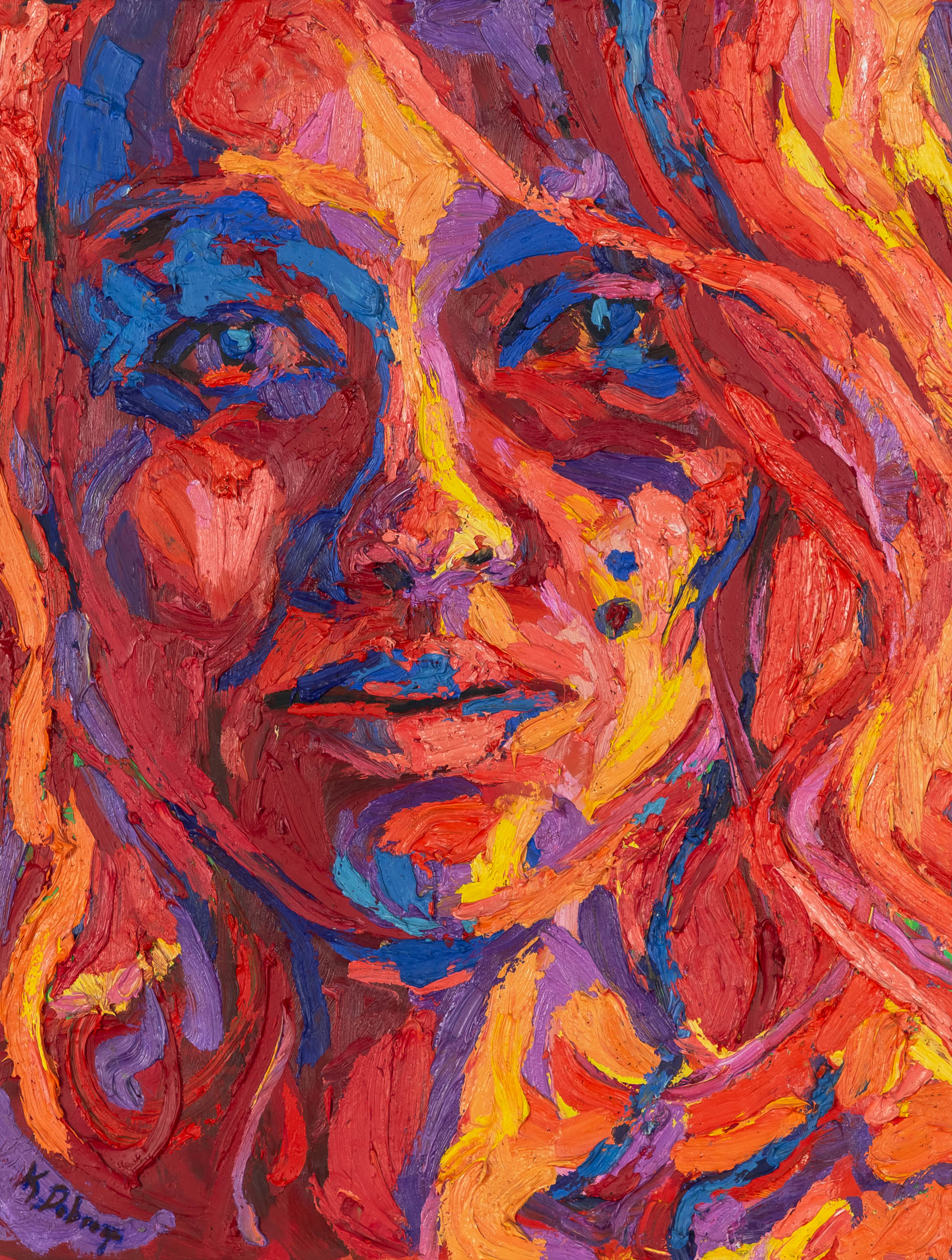 sygnowany l.d.: 'Kati Dobrogo' oraz opisany na odwrocie: 'Red / Autoportret | olej na płótnie | 2018 | Kati Dobrogo'