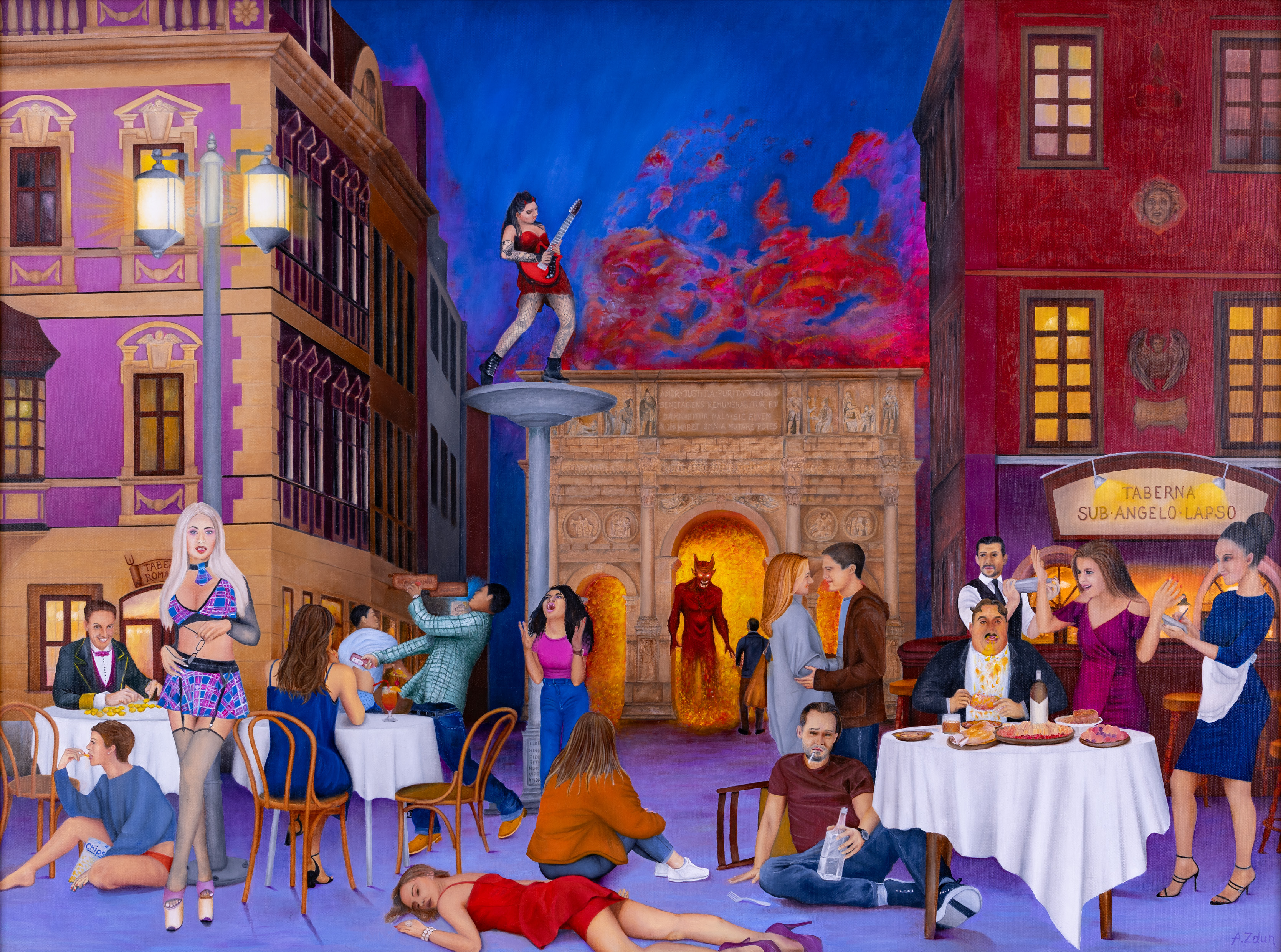sygnowany na odwrocie: 'Andrzej Zdun | Olej 140x105 | "Siedem" | 10/2024 | Miłość. Sprawiedliwość. Czystość. Wrażliwość | Czynienie dobra będzie wynagrodzone a zło...