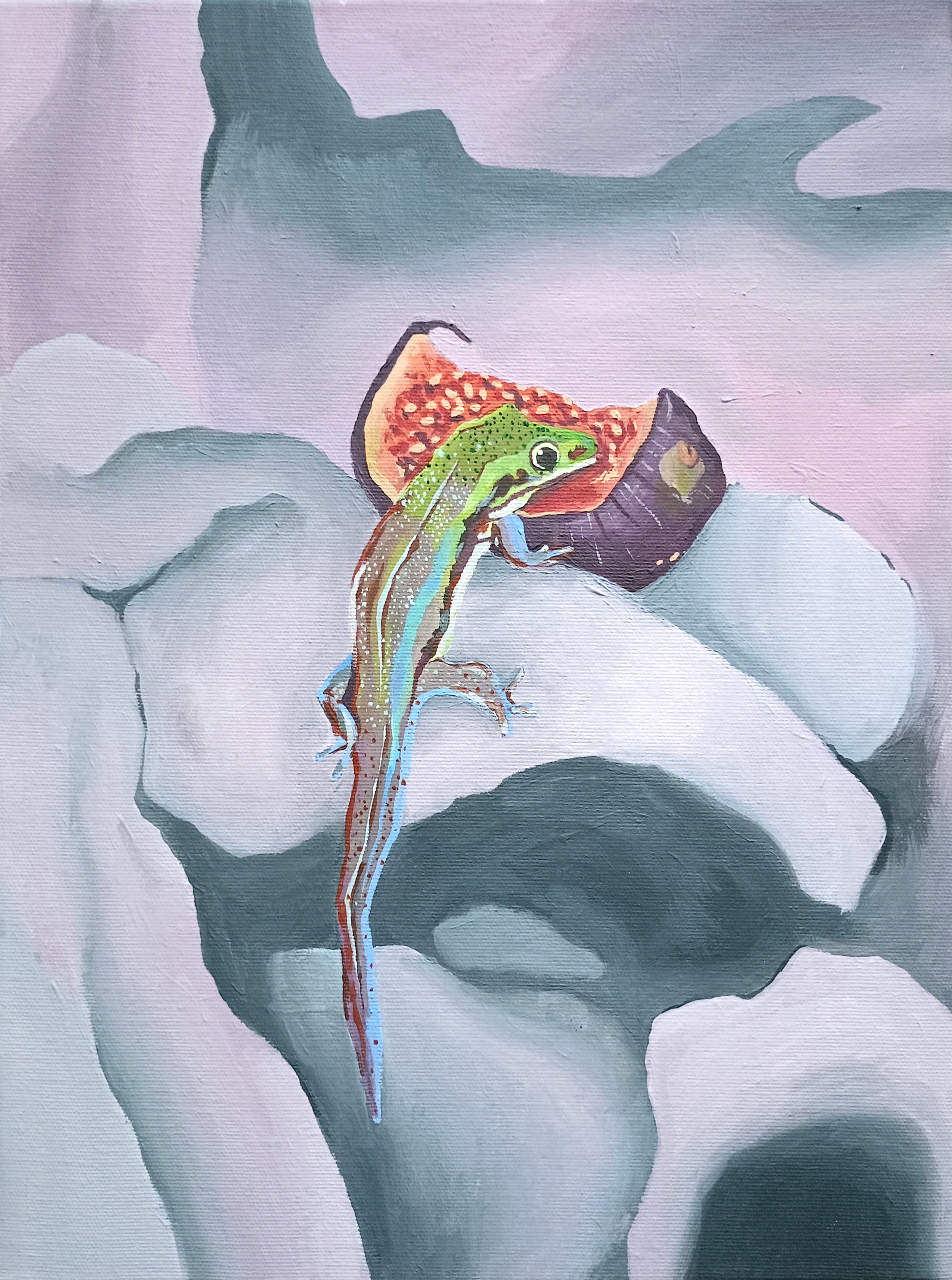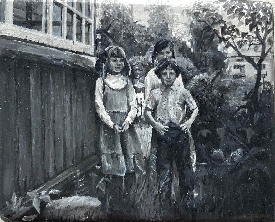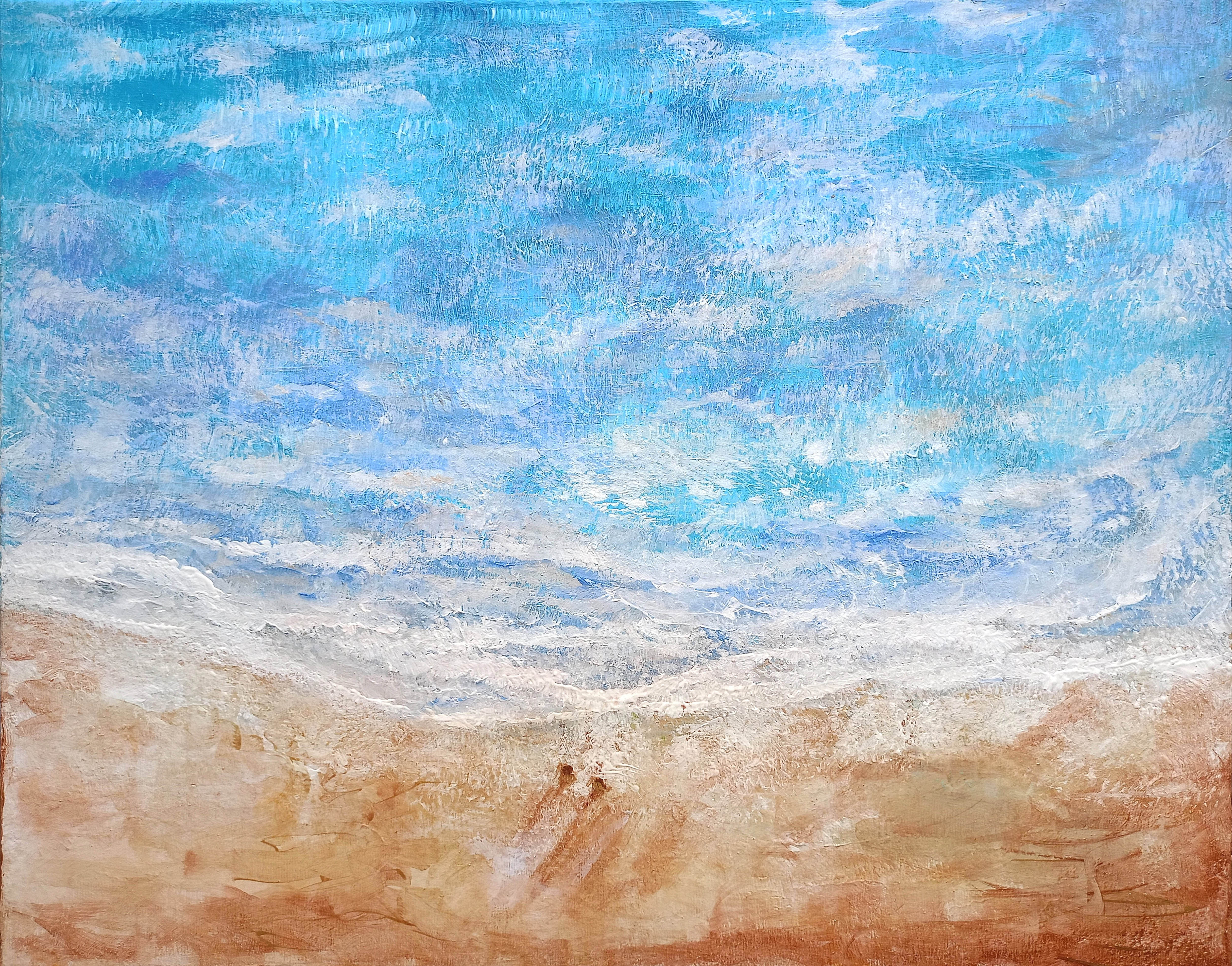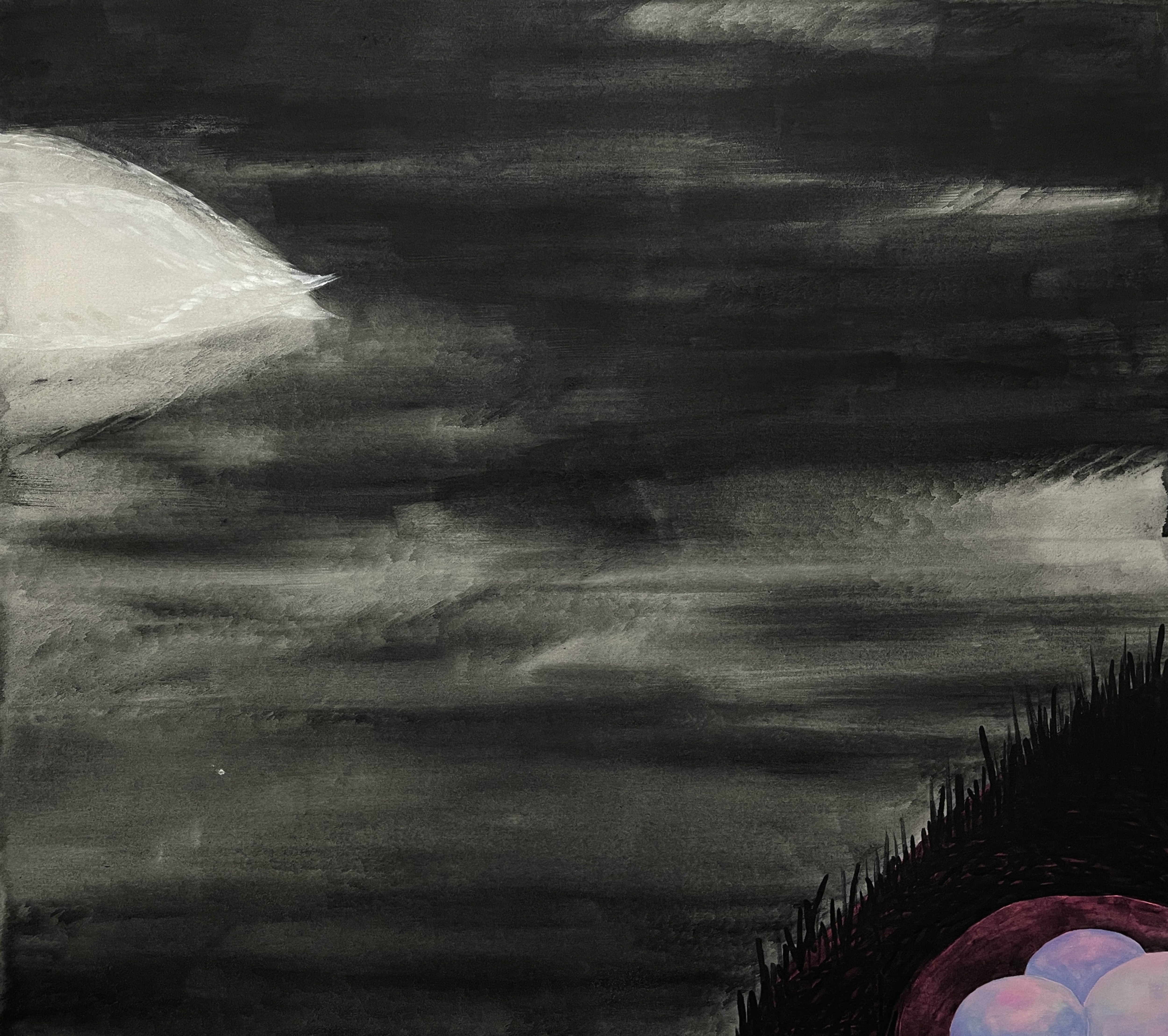 opisany “(WRACAJĄC DO DOMU) “RETURNING HOME” 2025 18X24cm acrylic/canvas JOANNA KARPOWICZ”