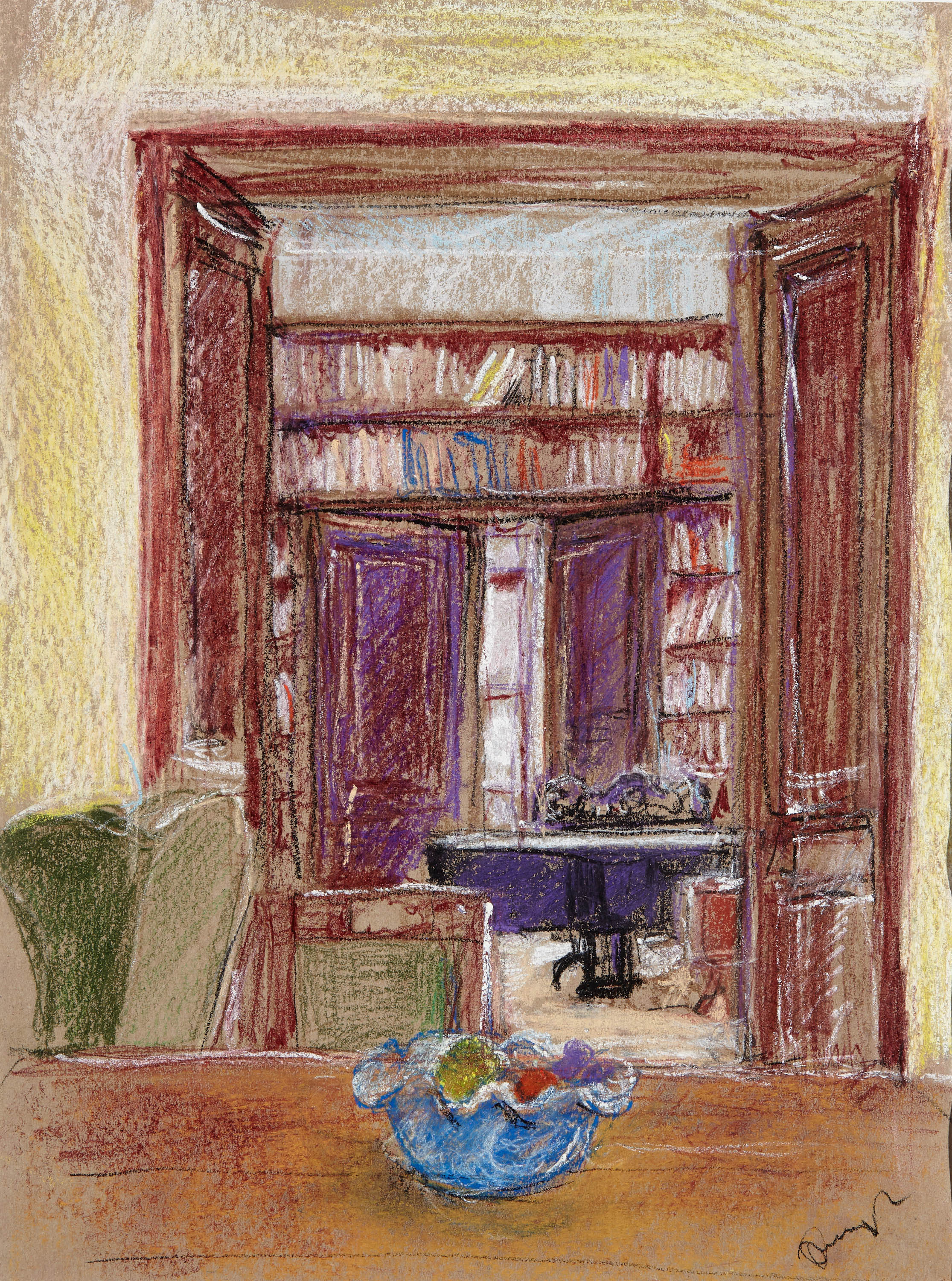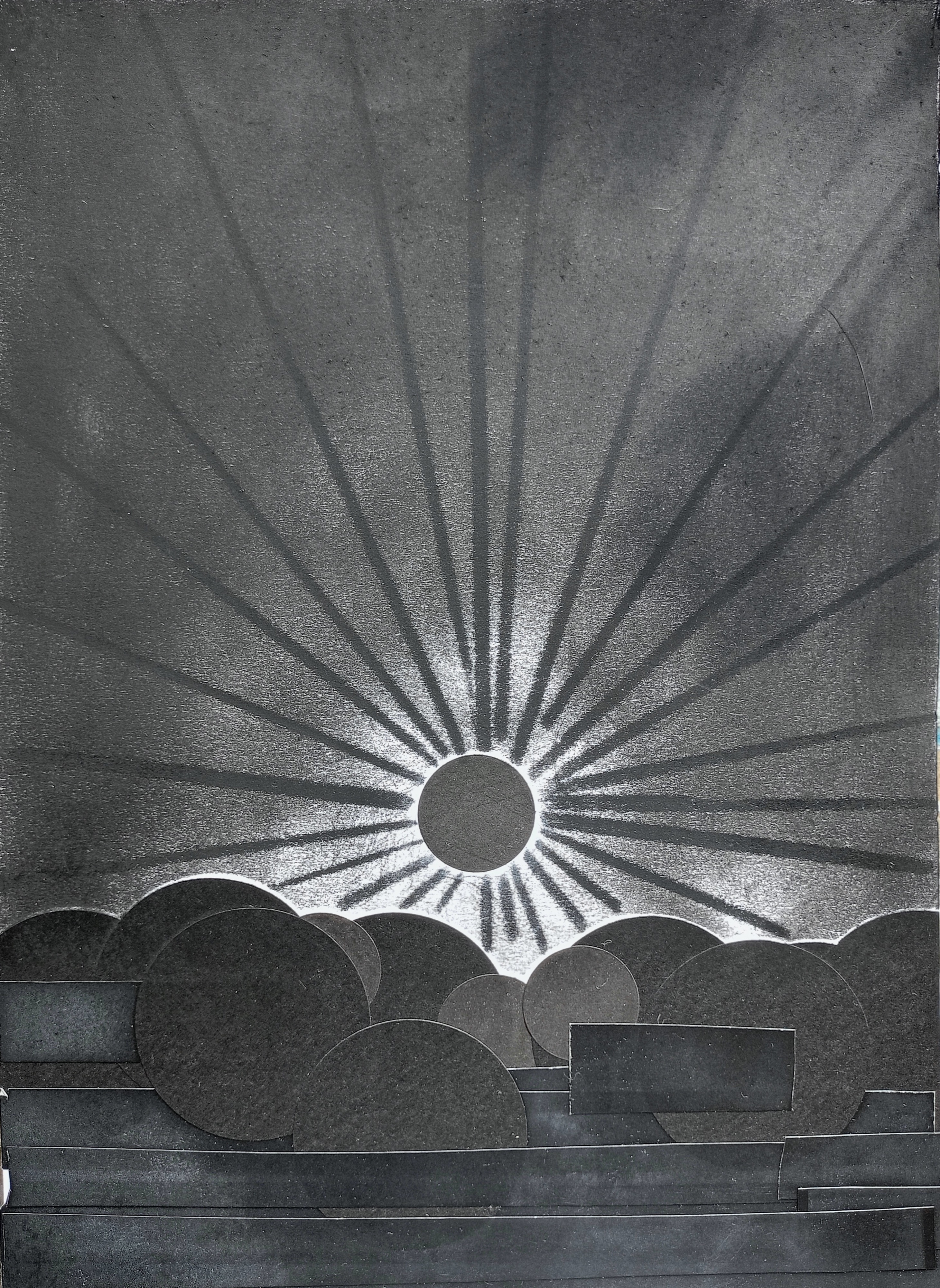 rysunek przez kalkę maszynową, sucha pastela, papier samoprzylepny na papierze, 20,3 x 27,3 cm,