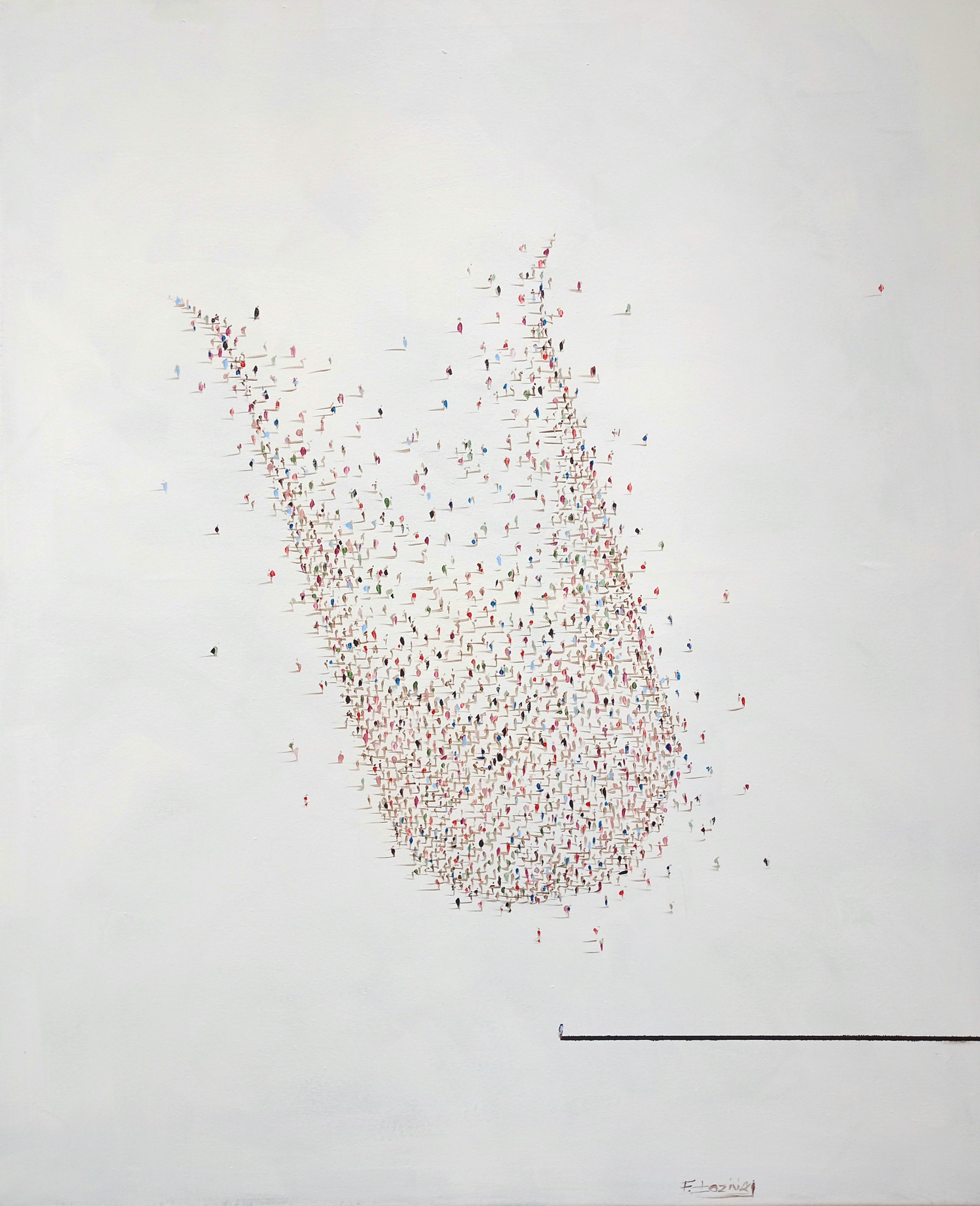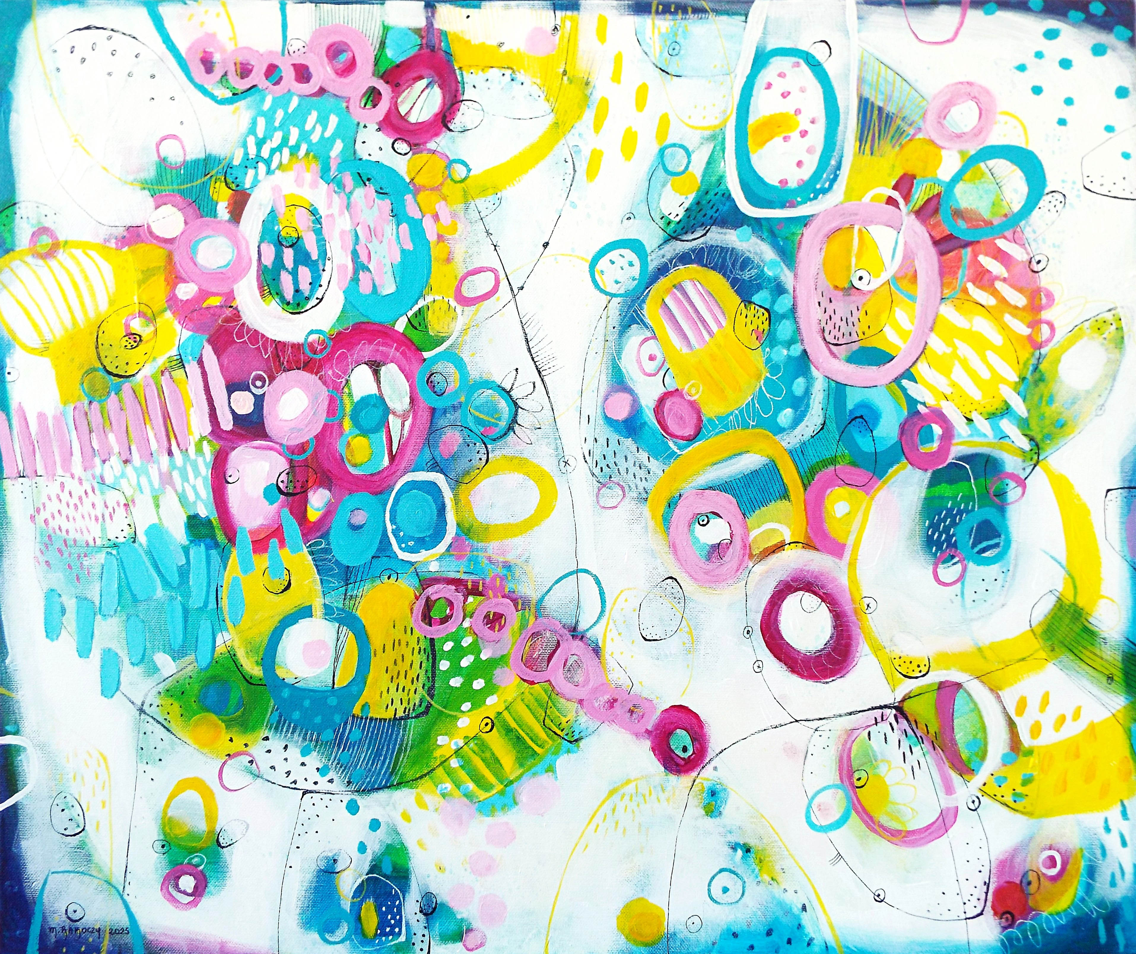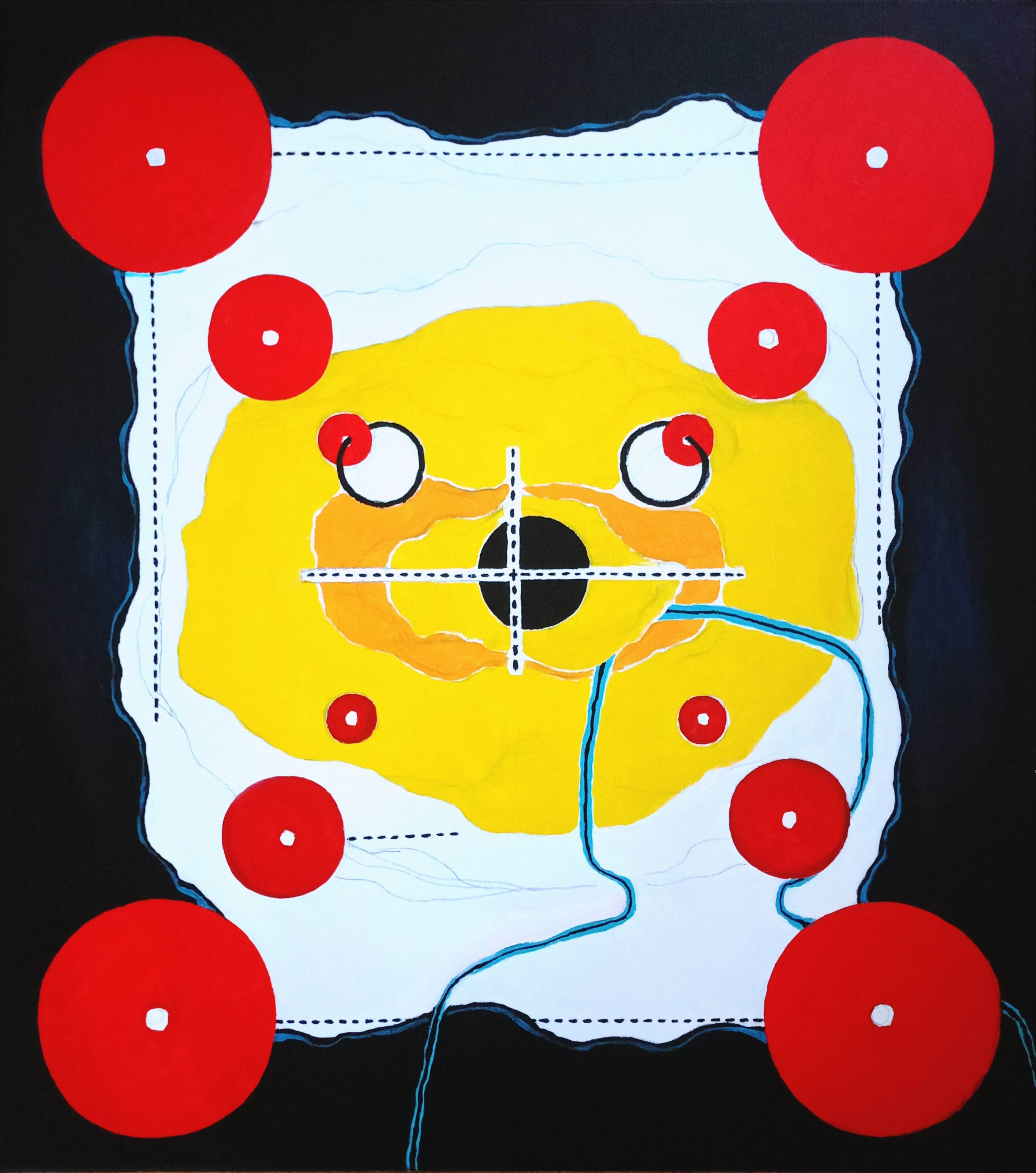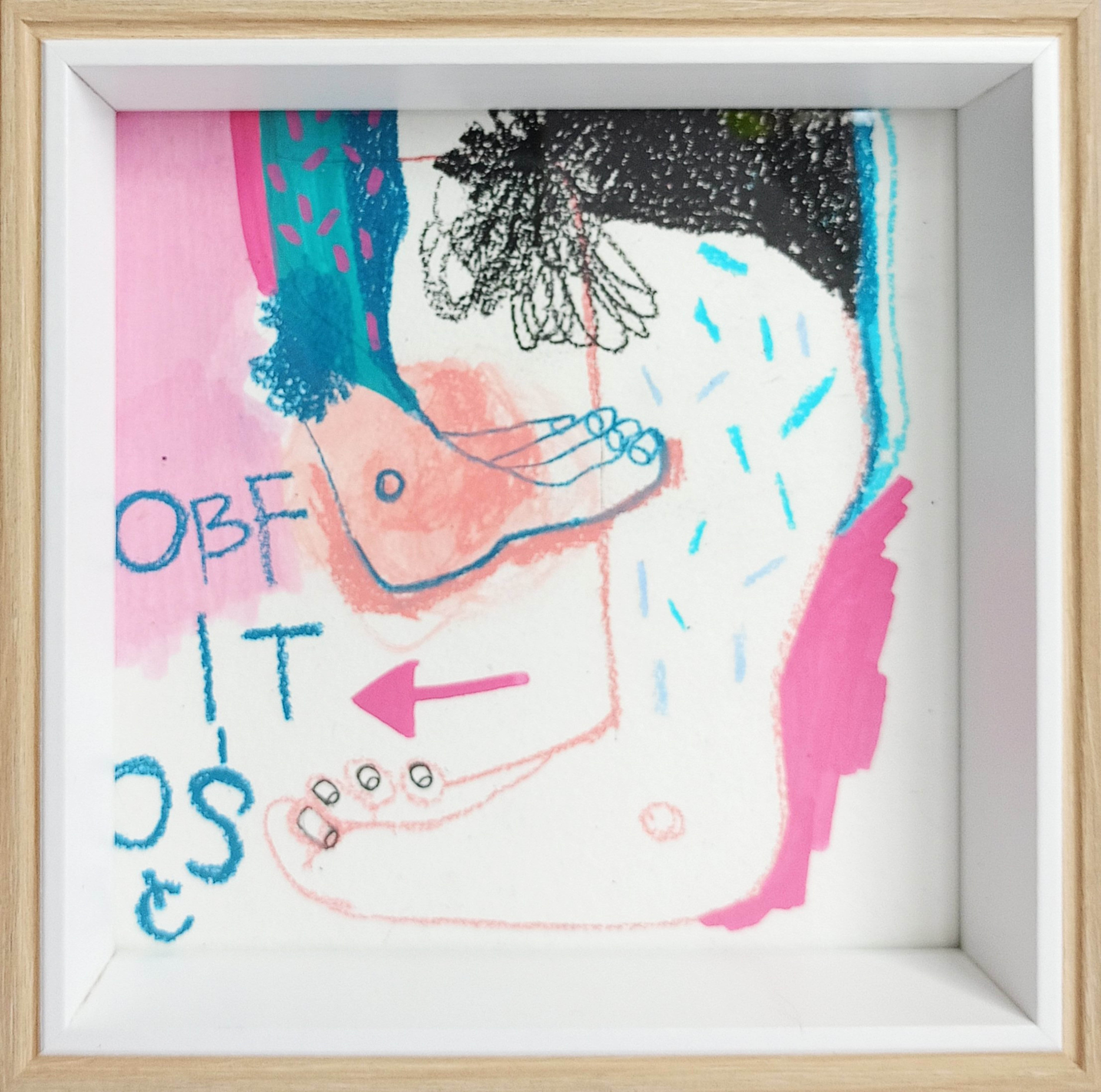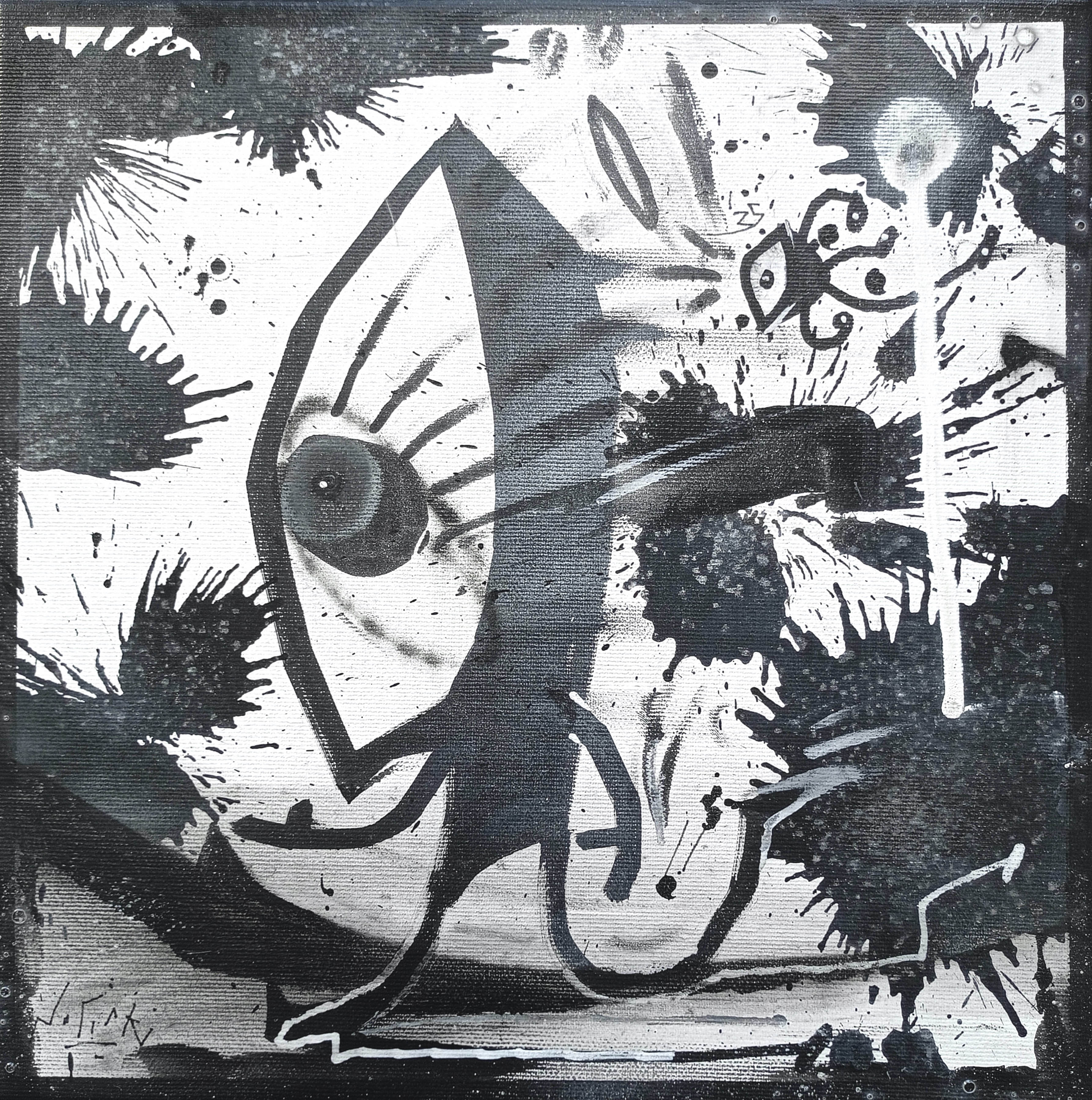 akryl, tusz i spray akrylowy na płótnie, 30 x 30 cm,