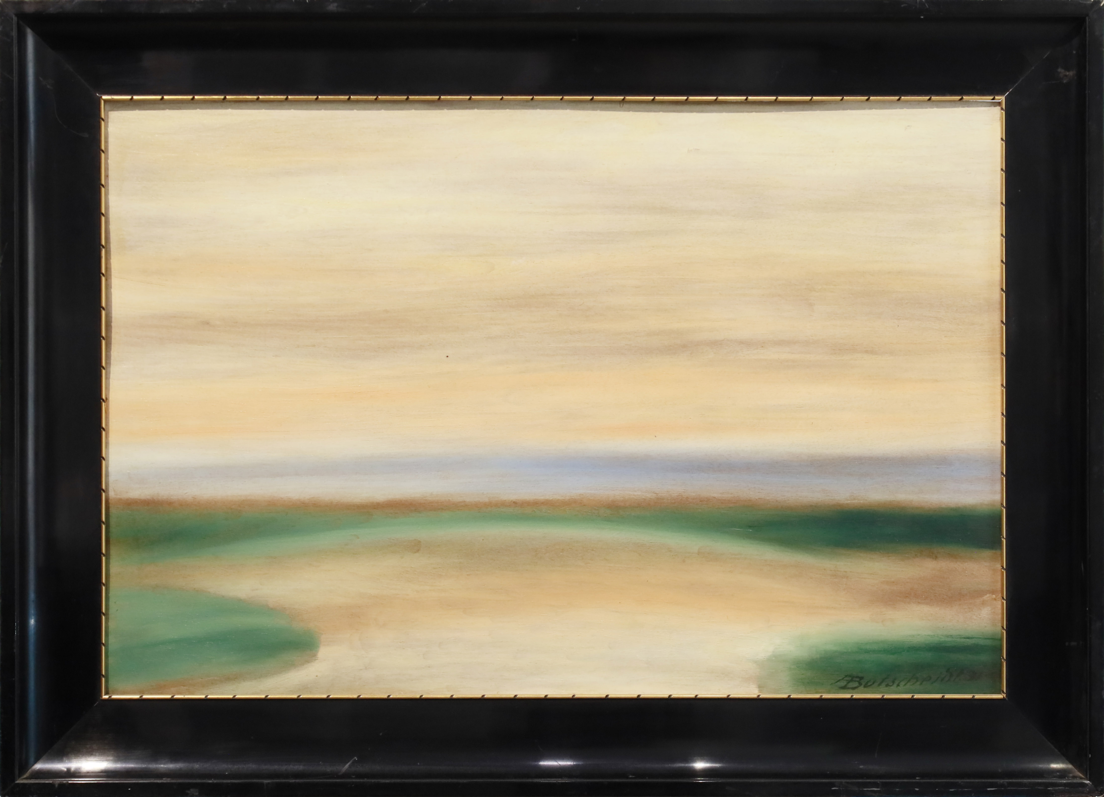 gwasz, karton; 29 x 48,5 cm; 35 x 54,5 cm (oprawa, rama)