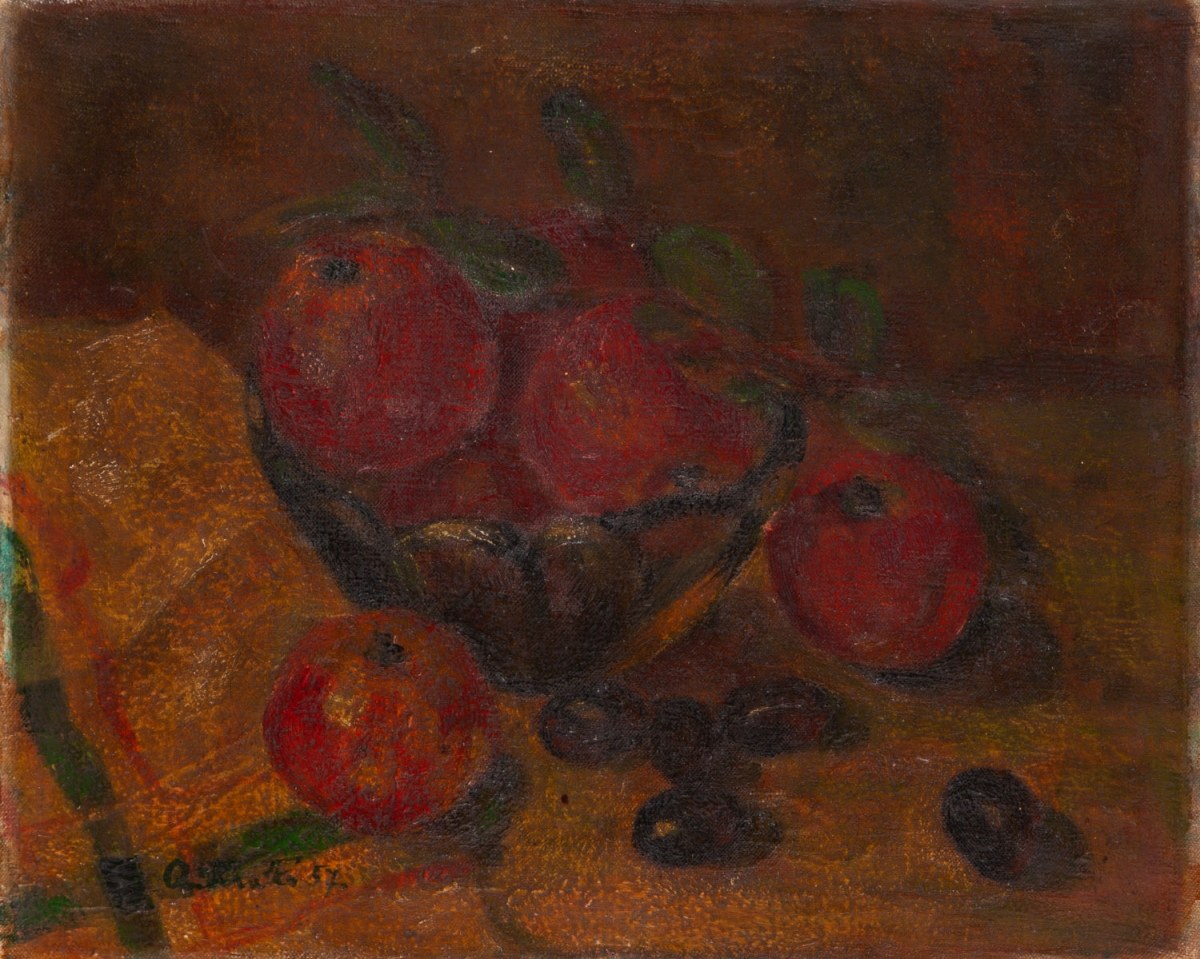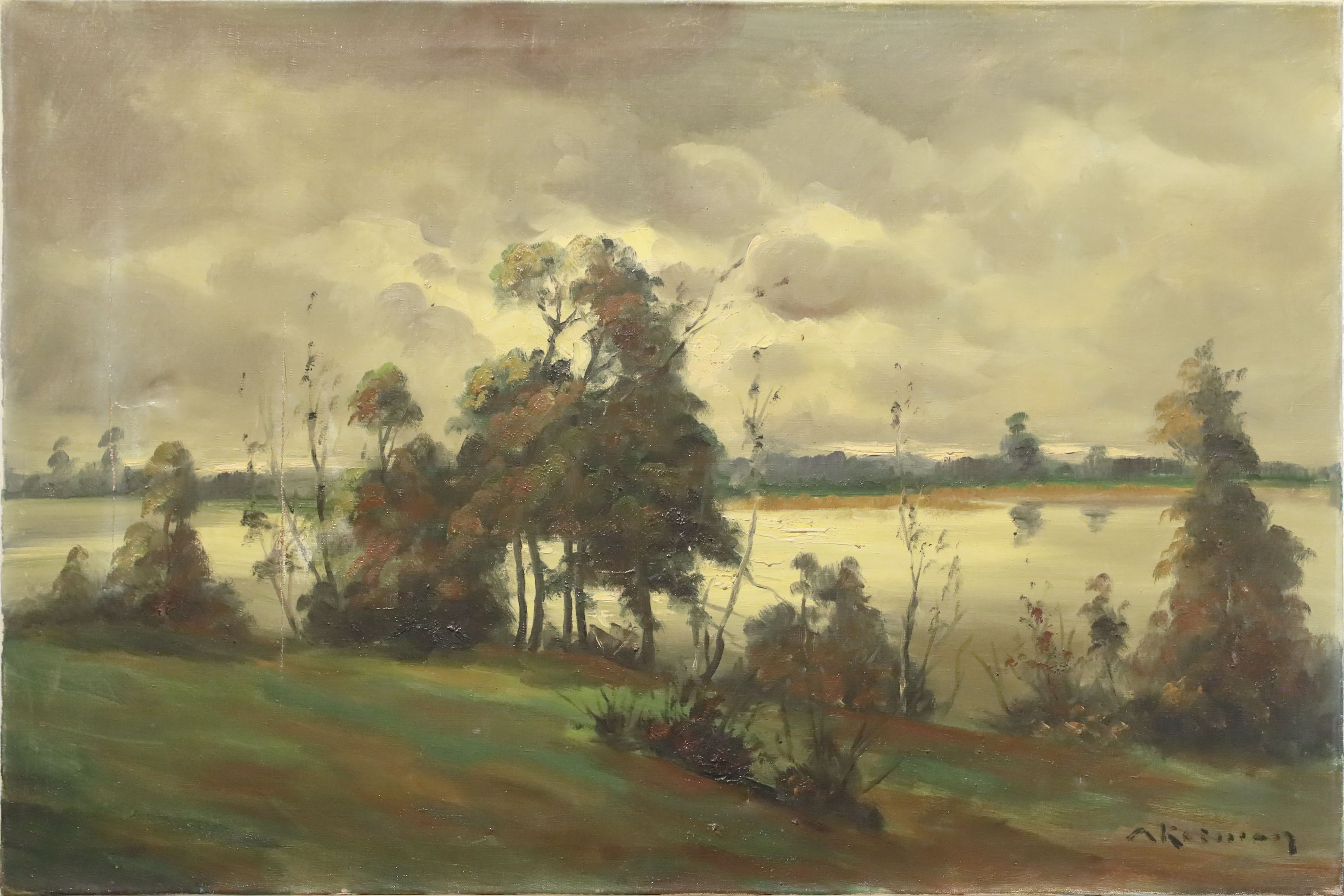 sygn. i dat. l. d.: (nieczytelnie) '57; bez ramy; zabrudzona warstwa malarska