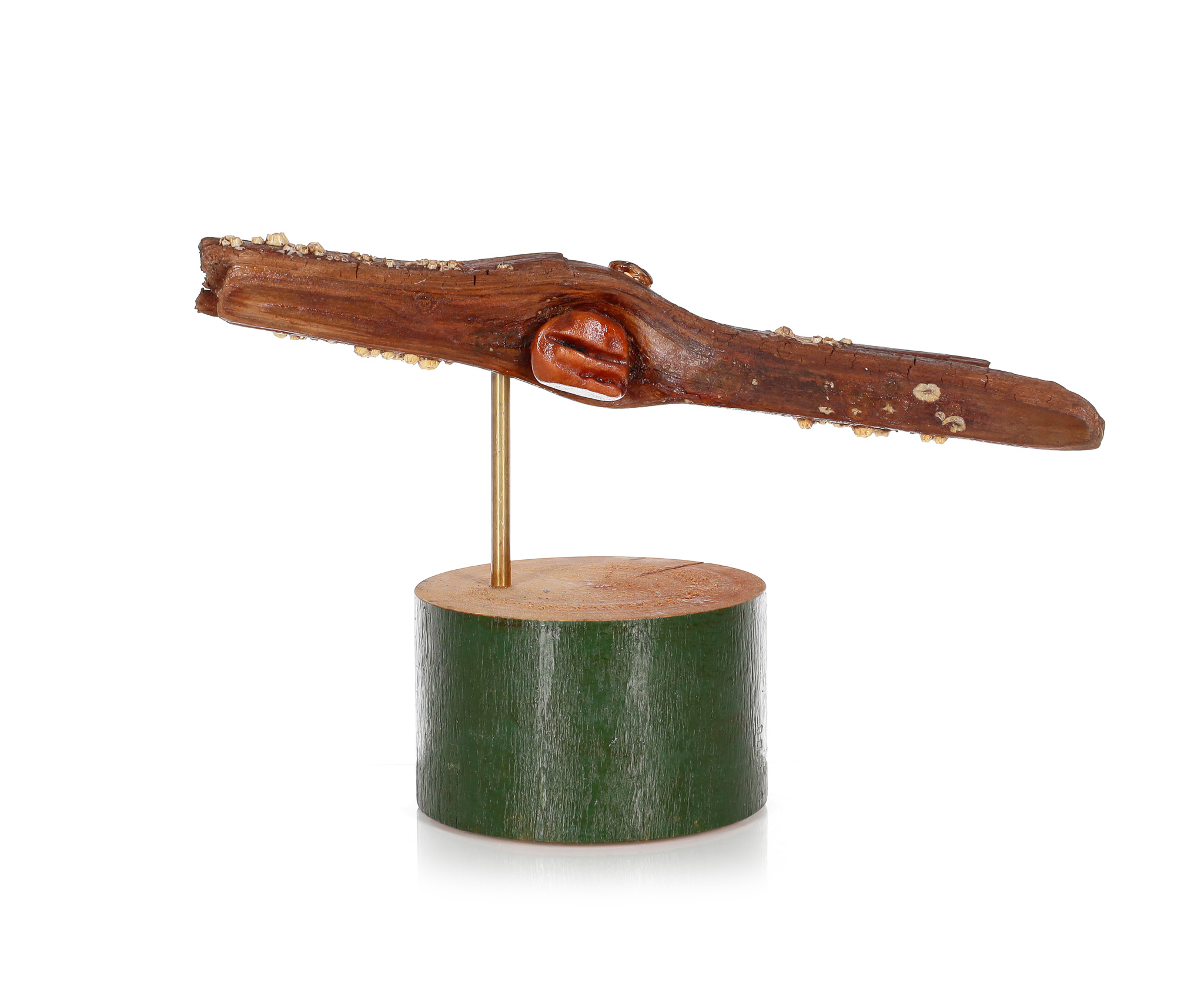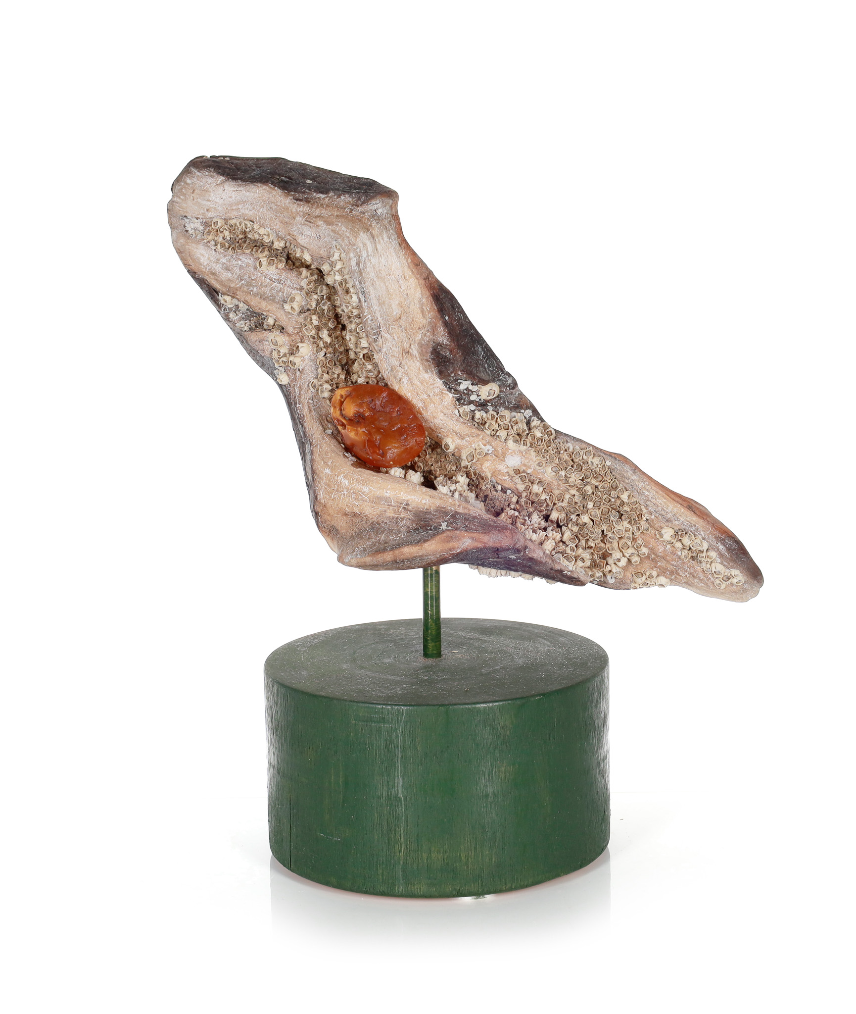 drewno, metal, bursztyn, 30 x 26,5 x 14 cm