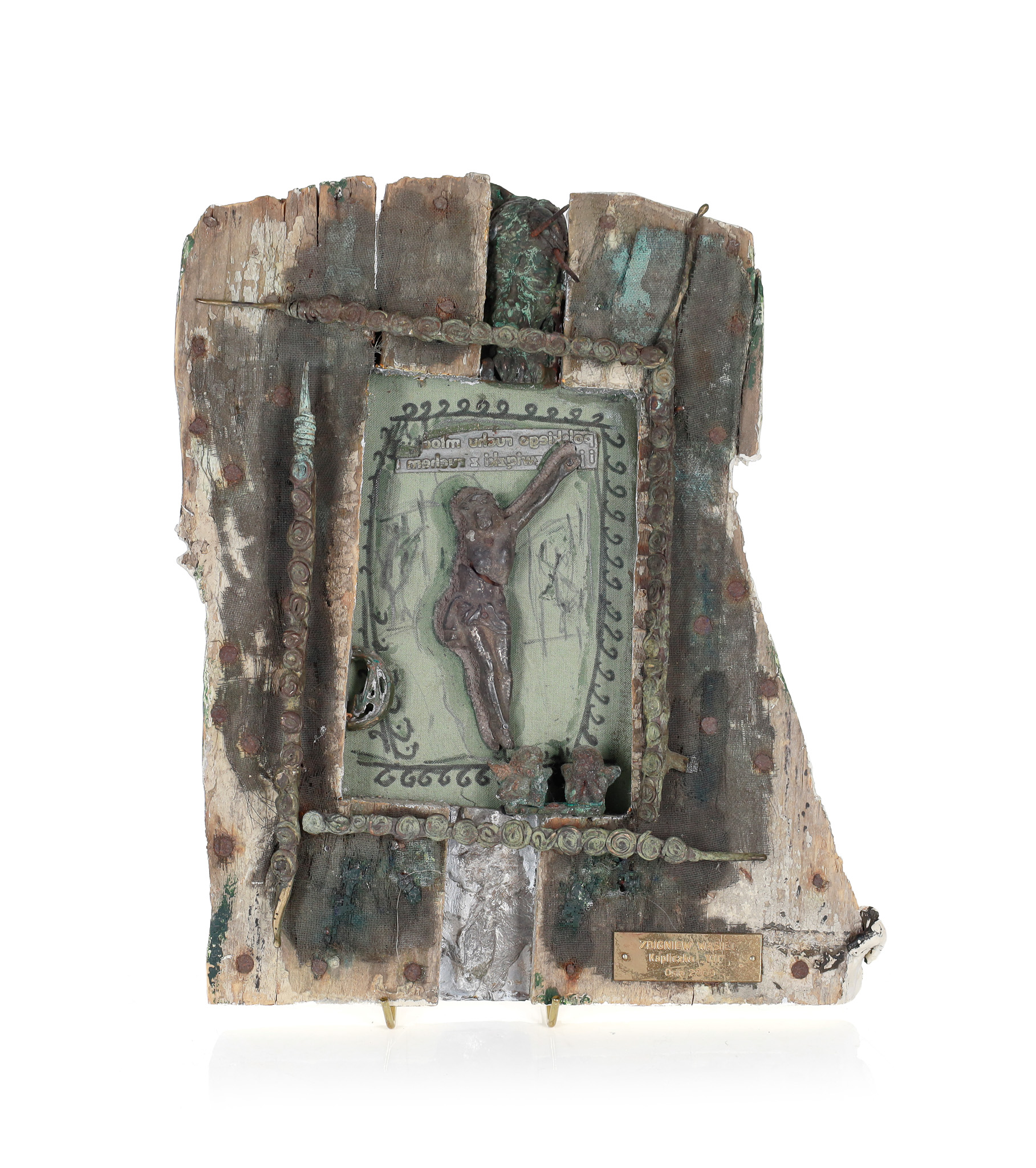 z przodu tabliczka: ZBIGNIEW WĄSIEL / Kapliczka "VII" / Oslo 2009; opisany na odwrocie: Zbigniew Wąsiel / "Kapliczka nr VII" / Olso 2009 / dedykcja)