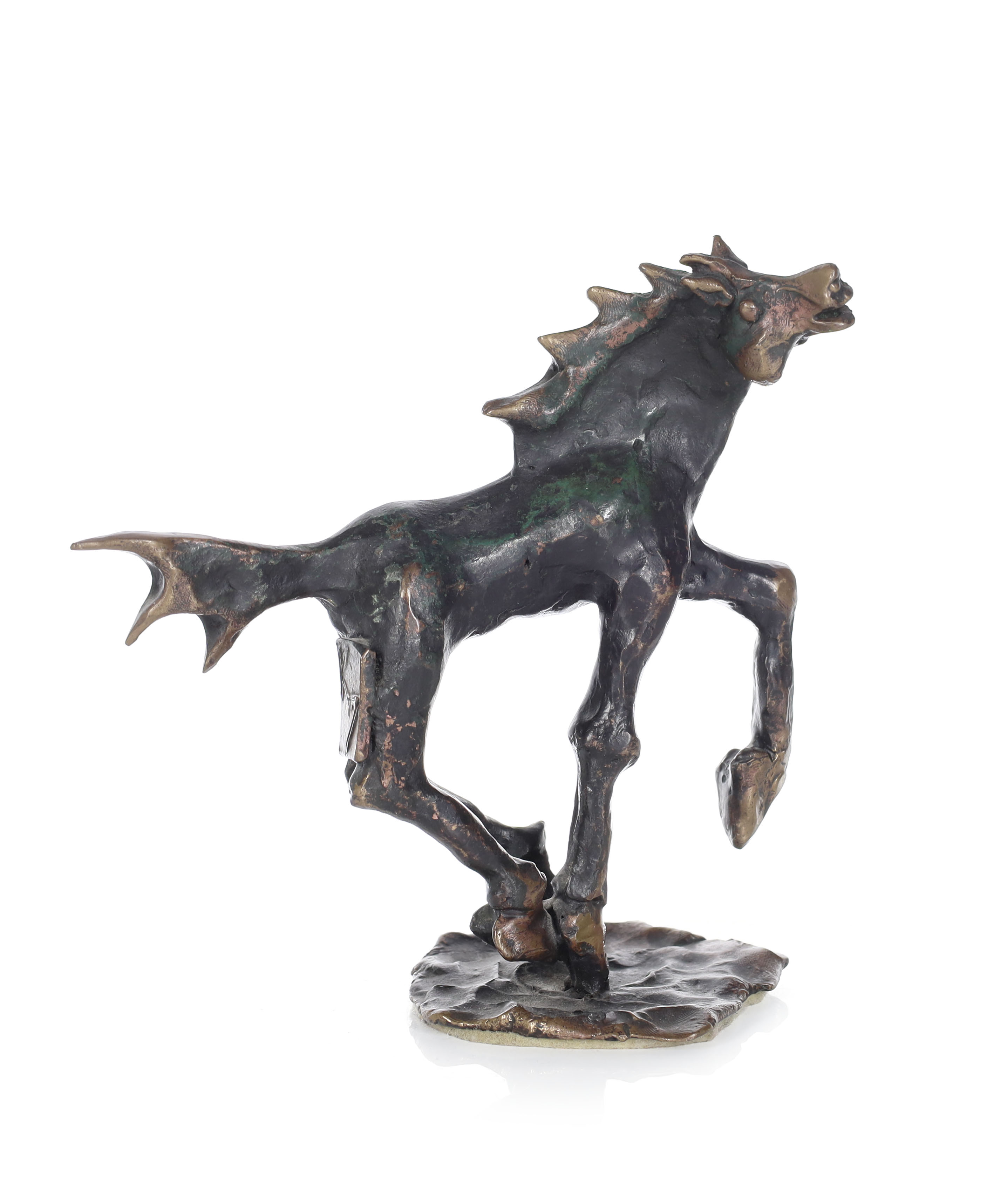 brąz patynowany na niebiesko i zielono, 38 x 20 x 17 cm;