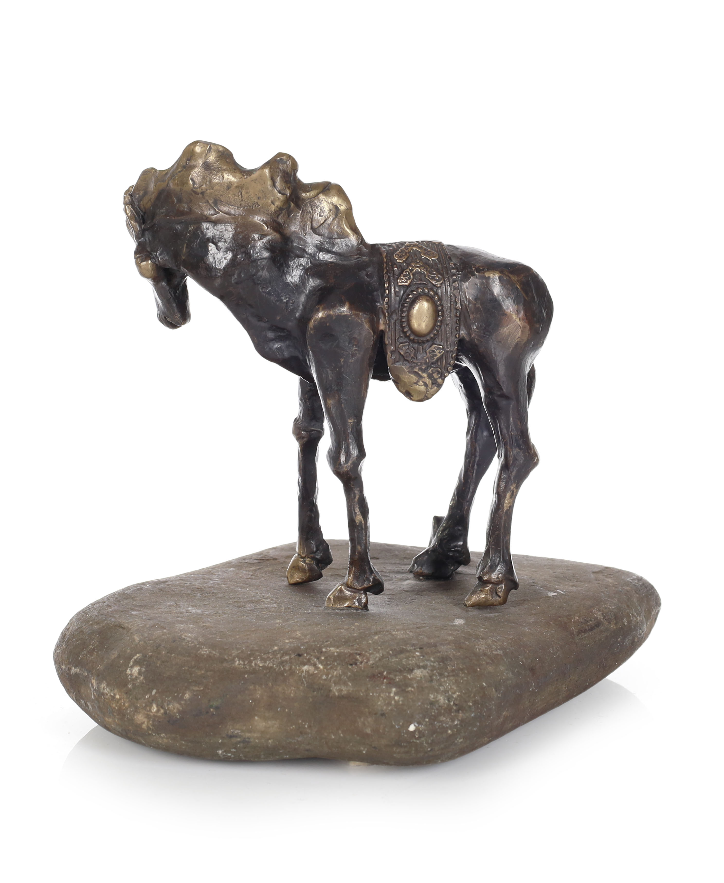 brąz patynowany, kamień, ok. 32 x 19 x 10,5 cm, ,