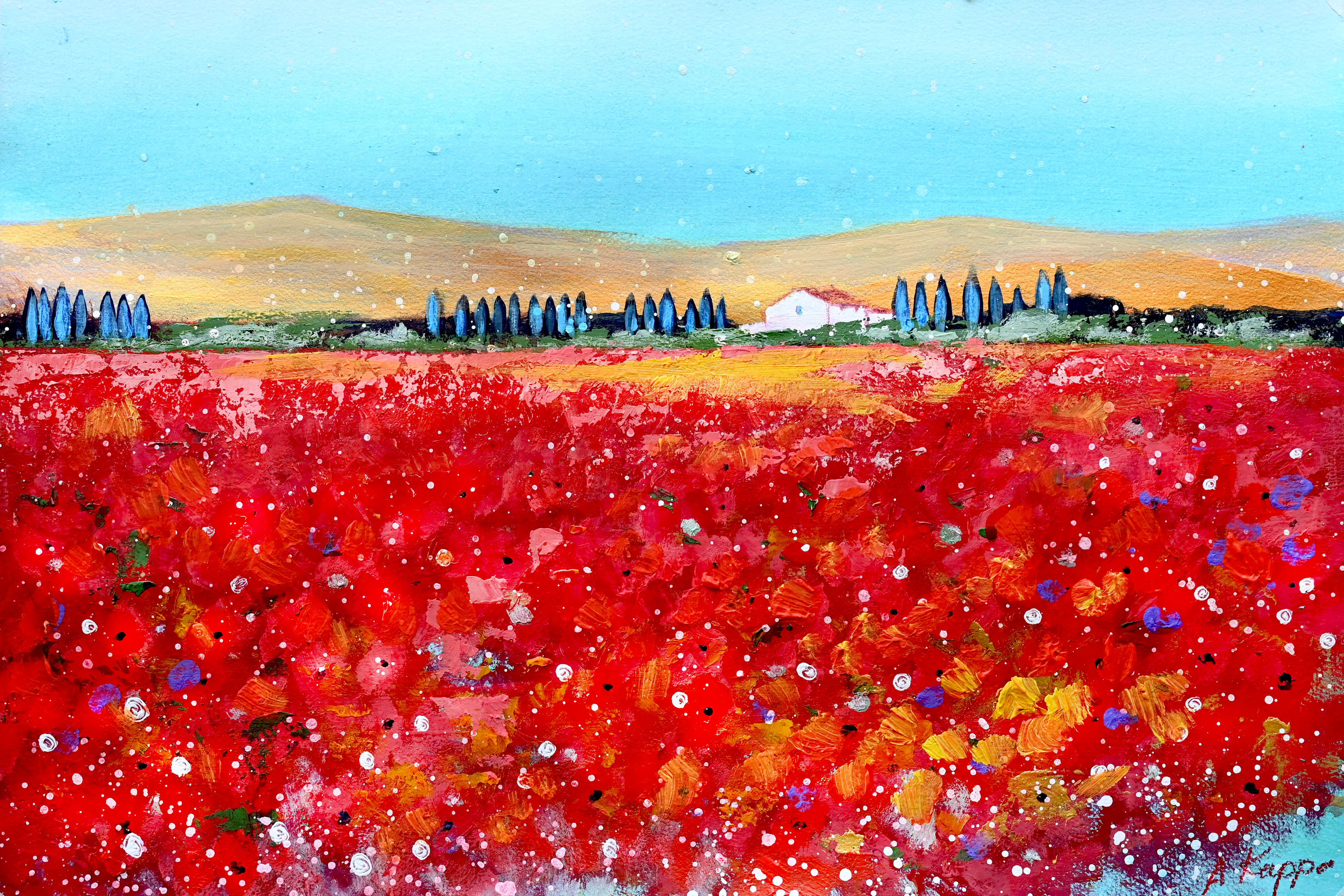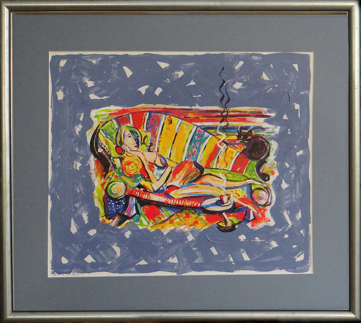 akryl, papier, 21 x 29 cm, w oprawie: 35 x 45 cm,