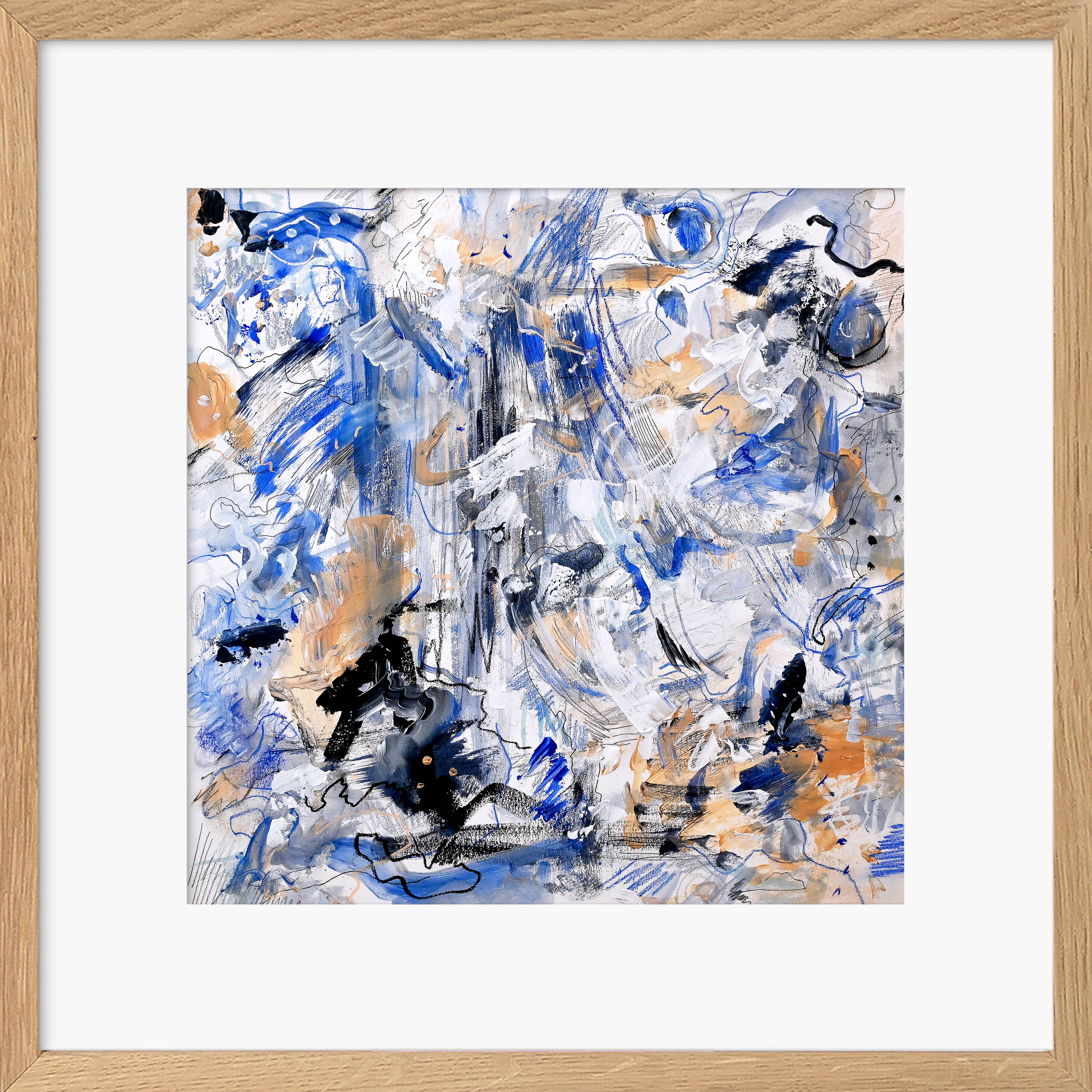 technika mieszana (akryl, tusz, pastel), papier akwarelowy Clairefontaine, 40 x 40 cm, w dębowej oprawie: 53 x 53 cm,